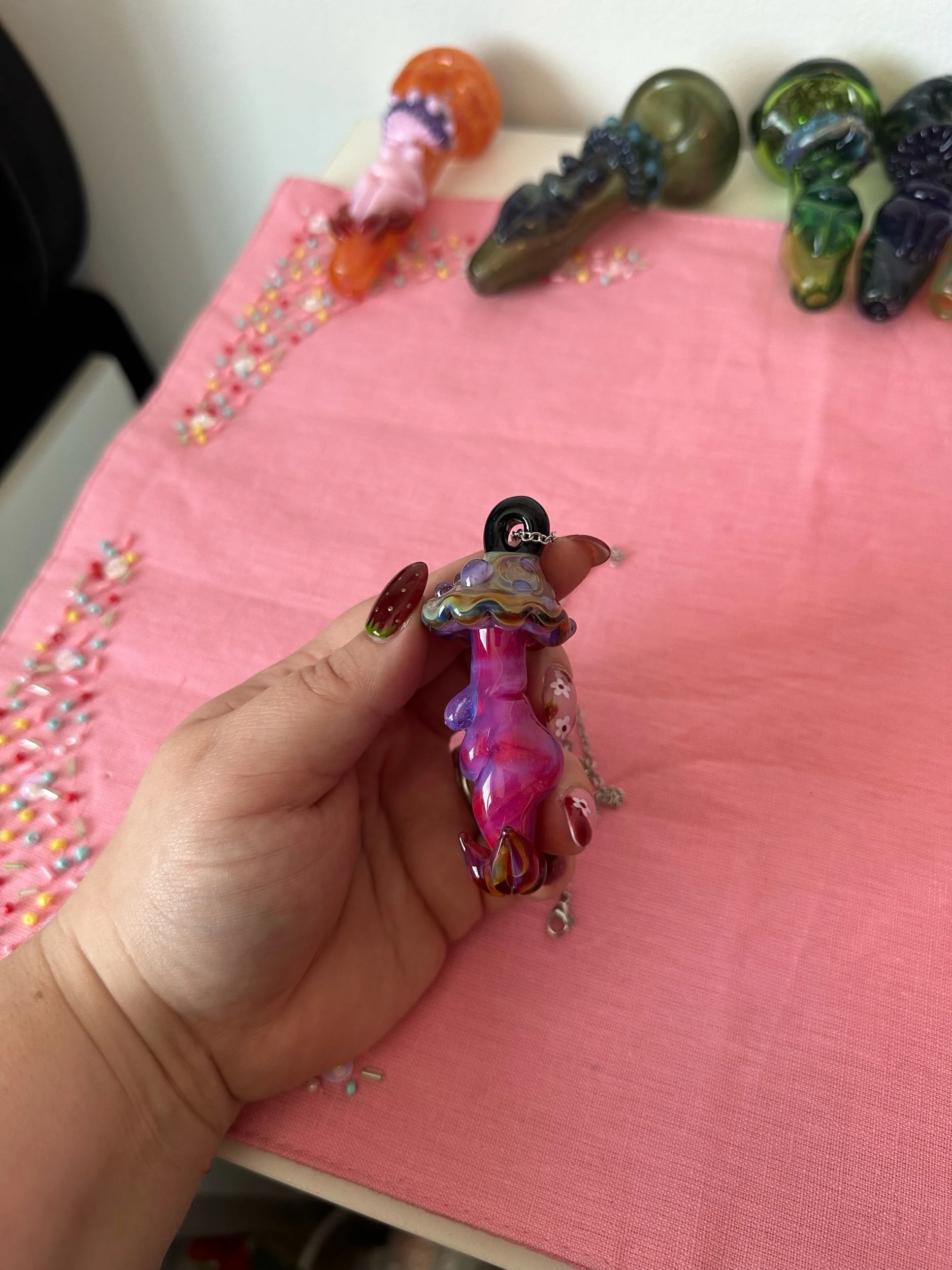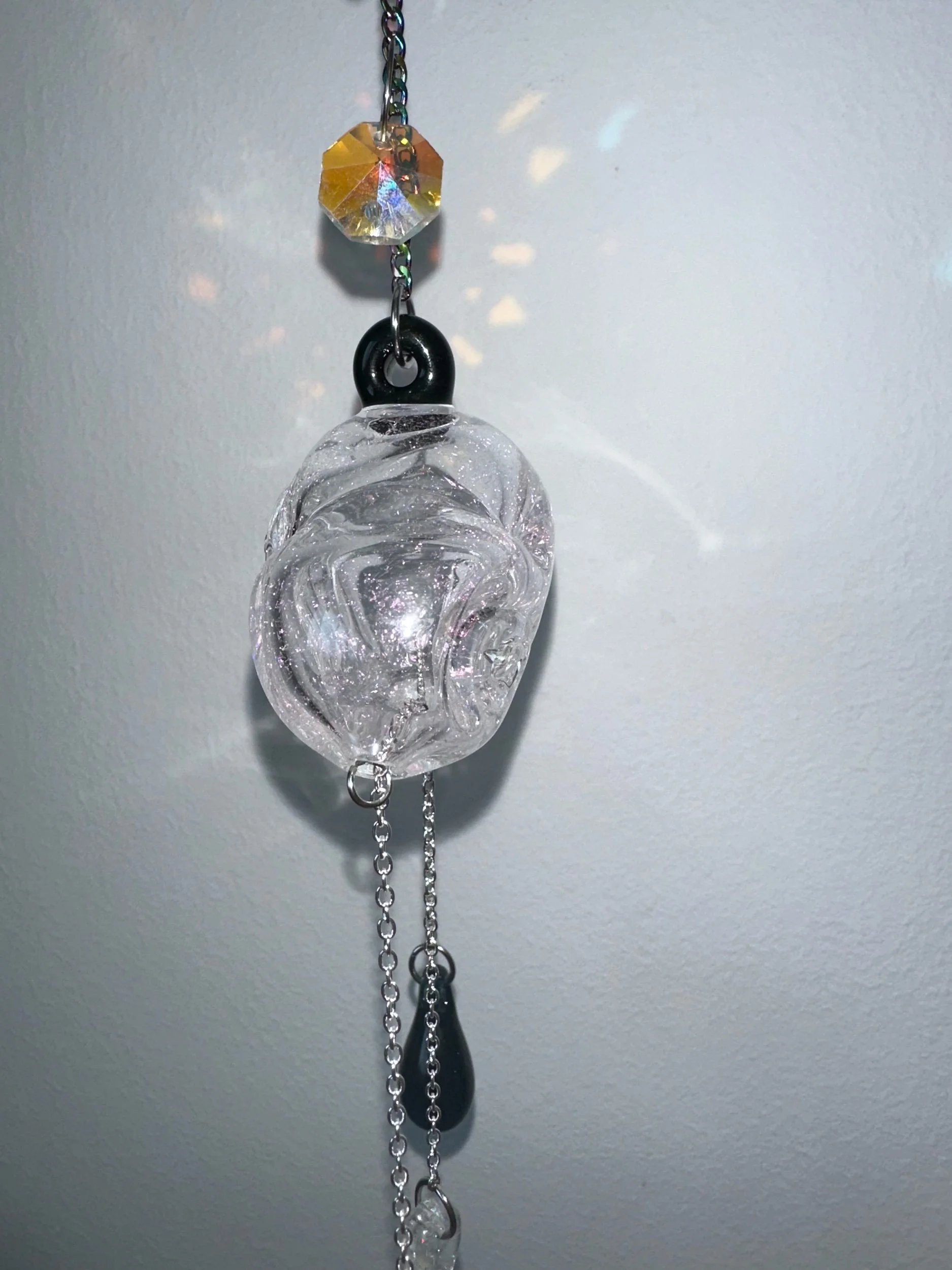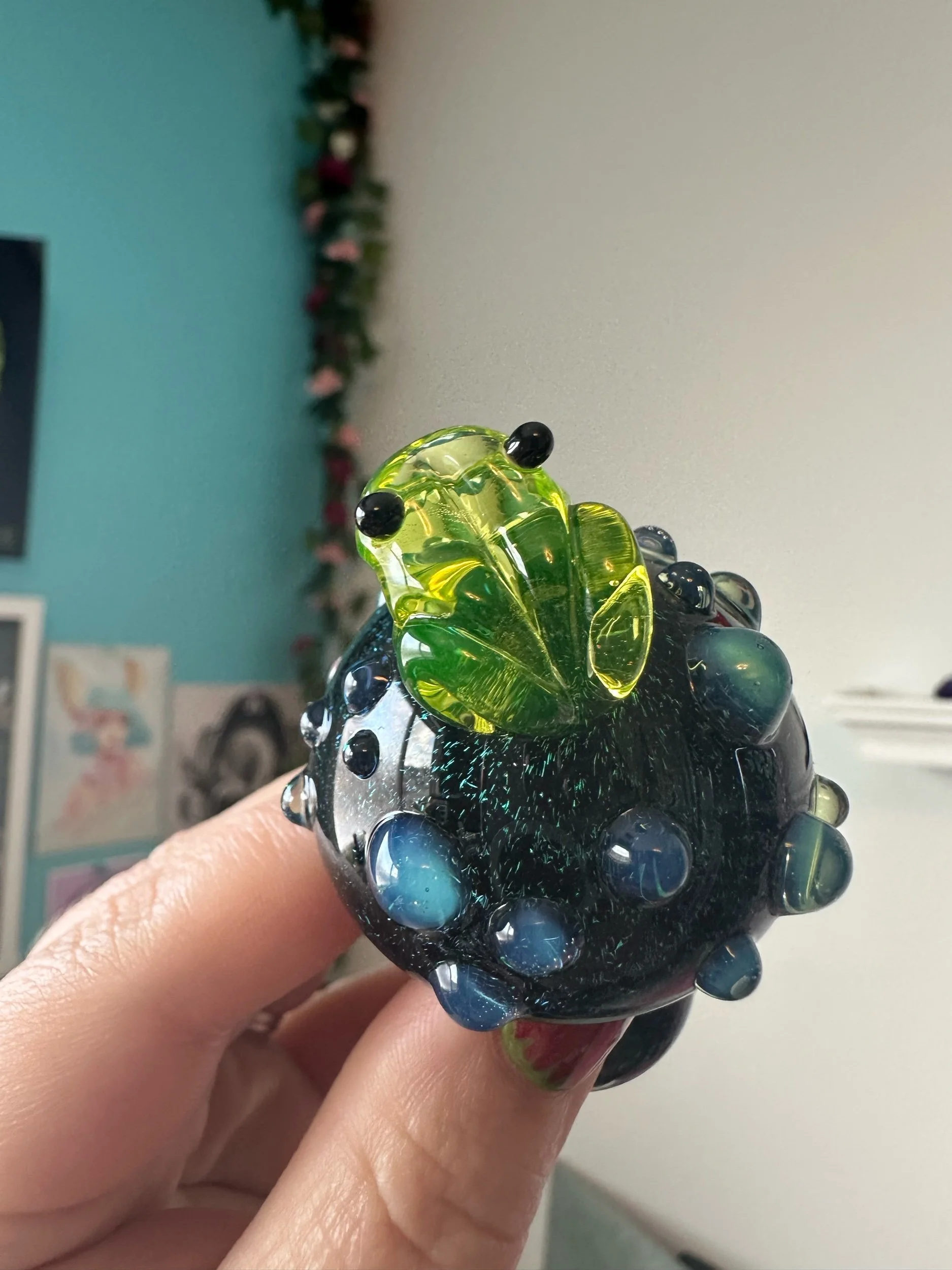 Torchworked borosilicate glass sculpture made by Deanna Cook. Fully annealed hard glass is still at risk of breaking if poorly handled.