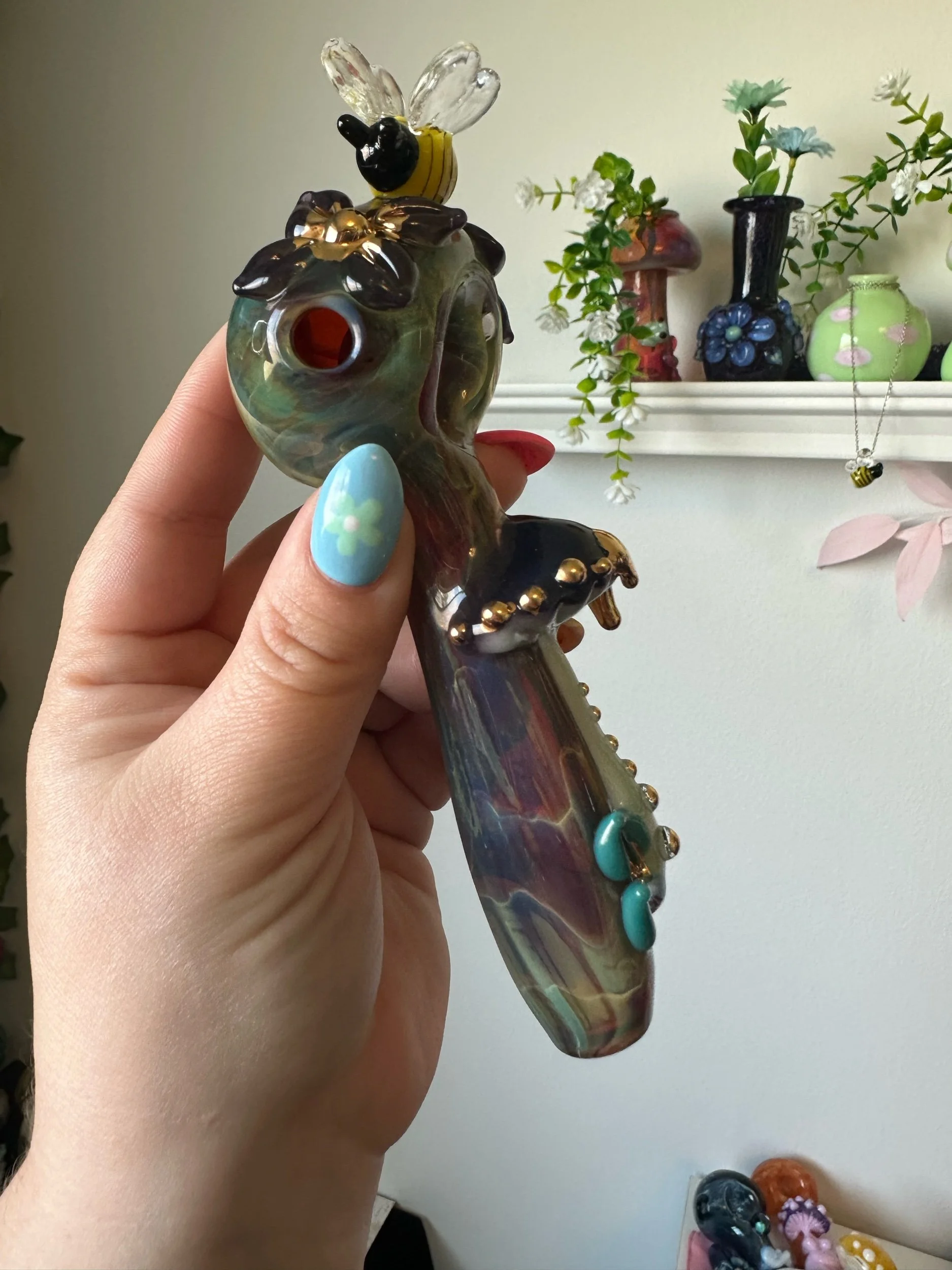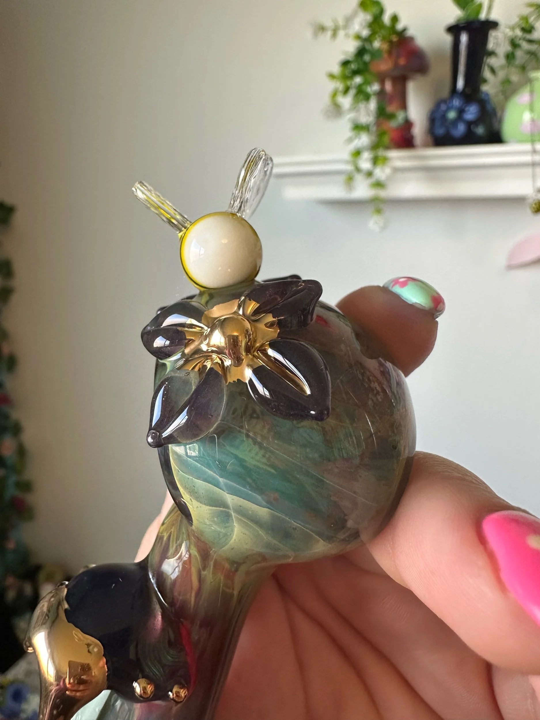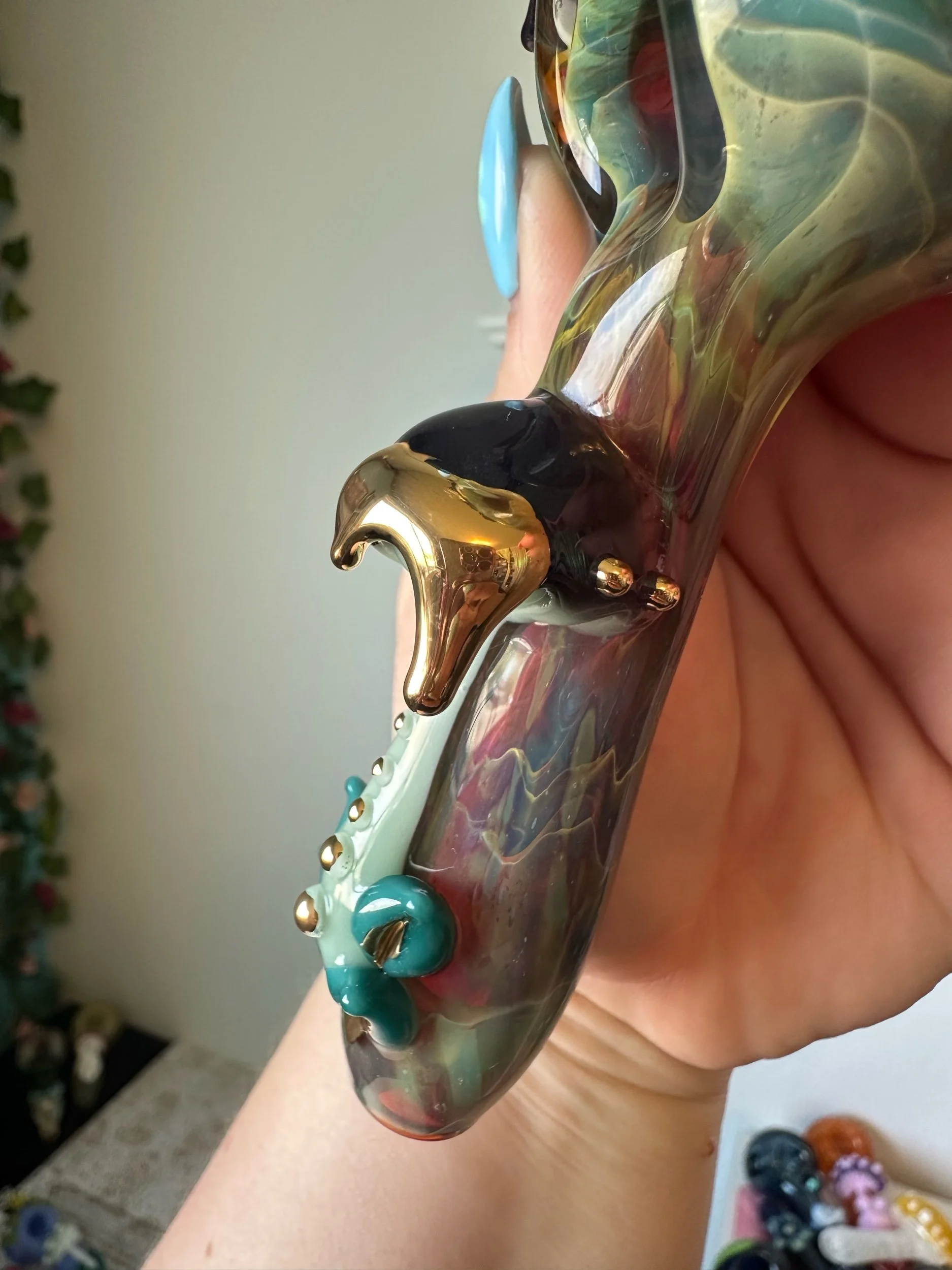 Torchworked borosilicate glass sculpture made by Deanna Cook. Fully annealed hard glass is still at risk of breaking if poorly handled.