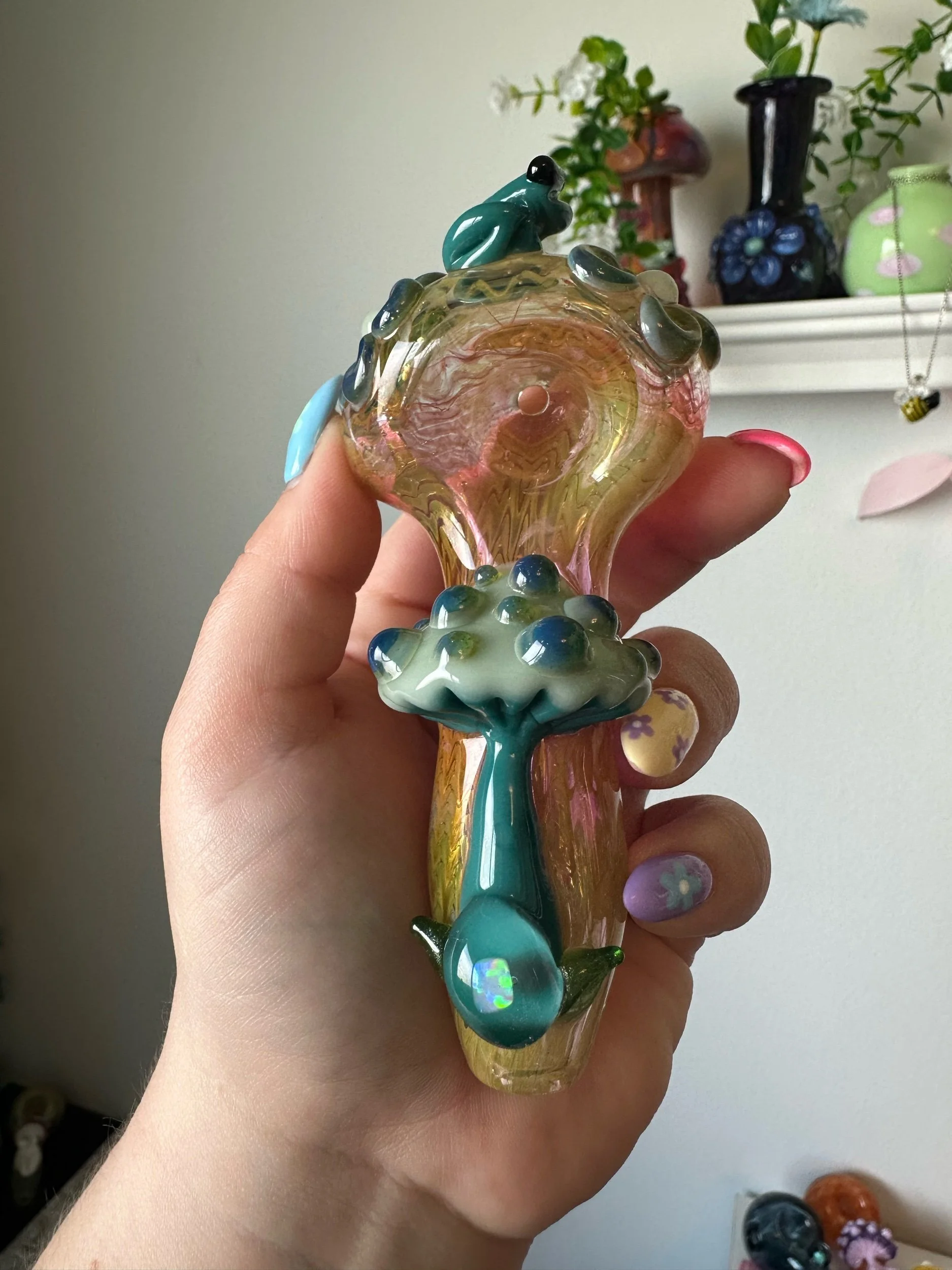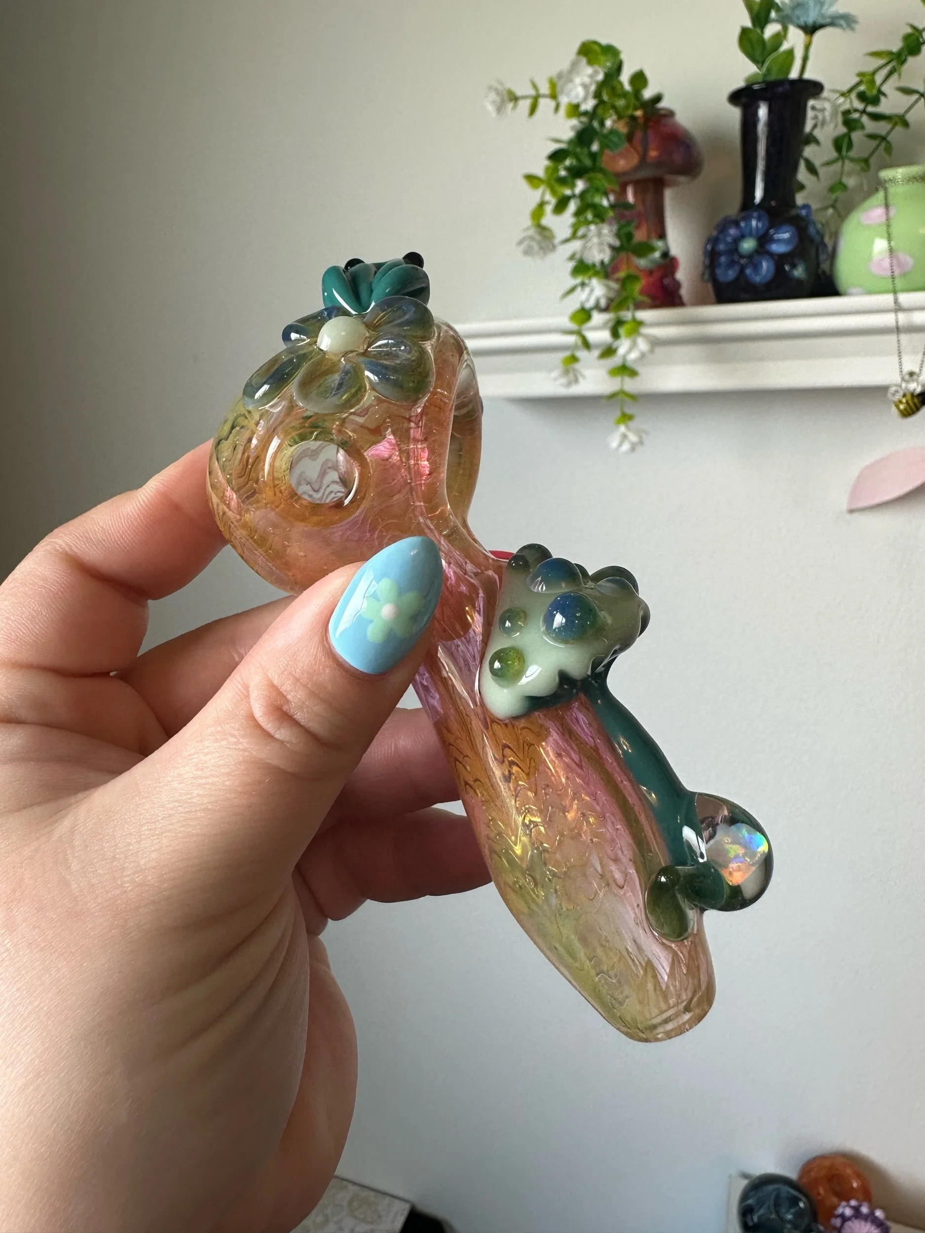 Torchworked borosilicate glass sculpture made by Deanna Cook. Fully annealed hard glass is still at risk of breaking if poorly handled.