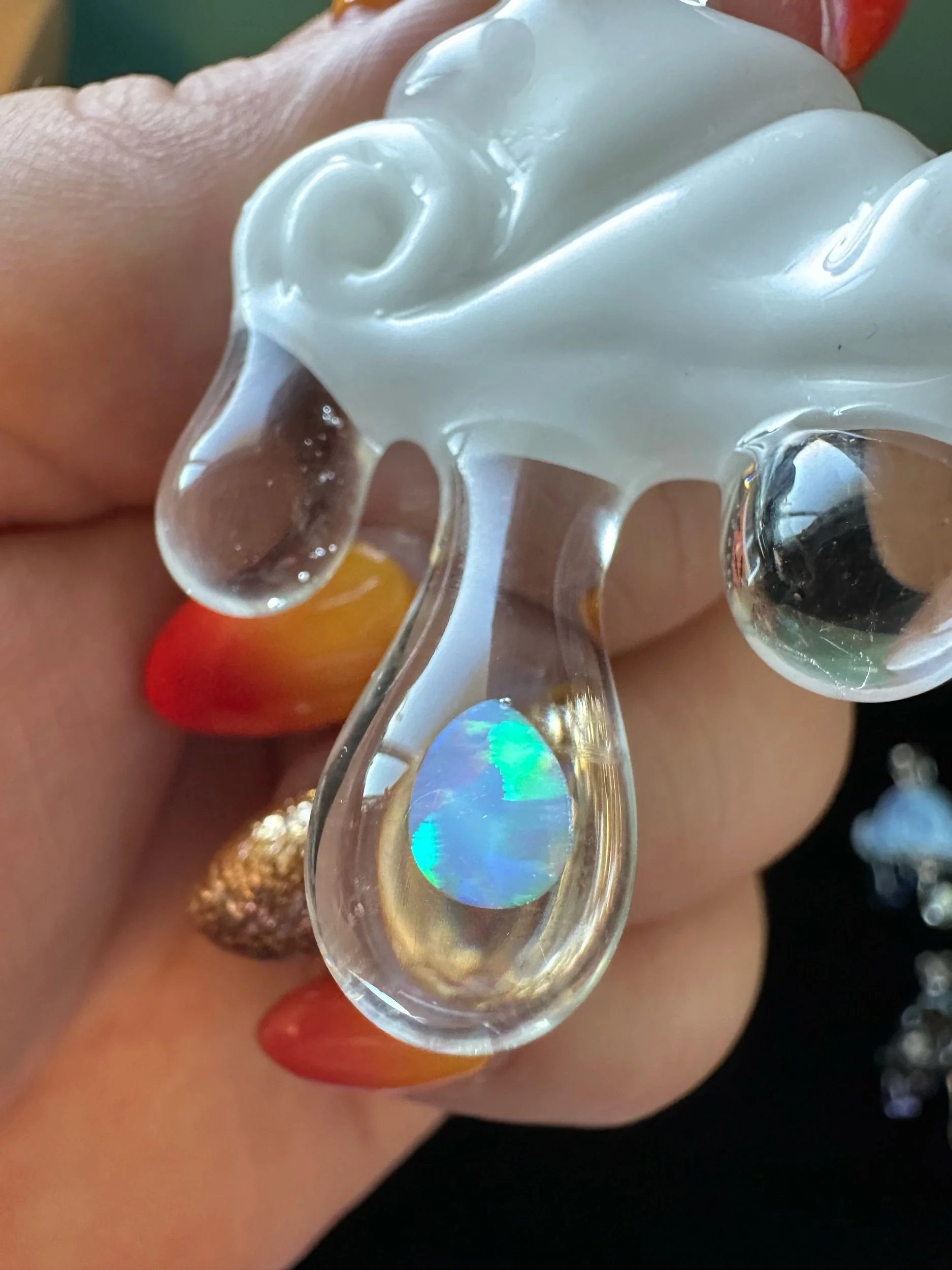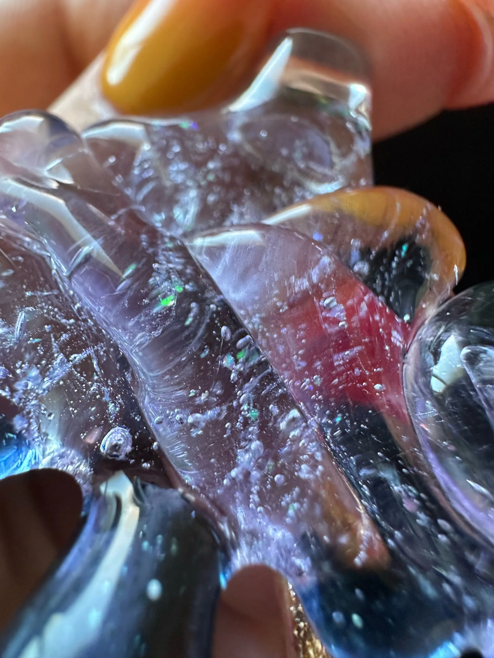 Torchworked borosilicate glass sculpture made by Deanna Cook. Fully annealed hard glass is still at risk of breaking if poorly handled.