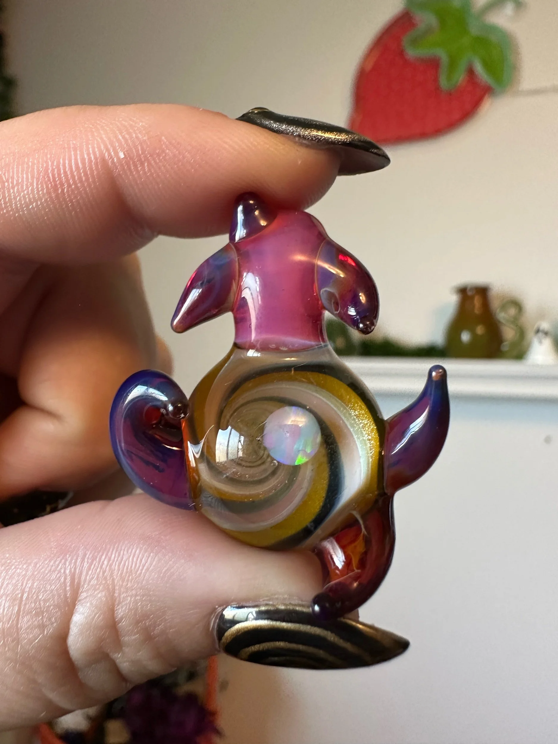 Torchworked borosilicate glass sculpture made by Deanna Cook. Fully annealed hard glass is still at risk of breaking if poorly handled.
