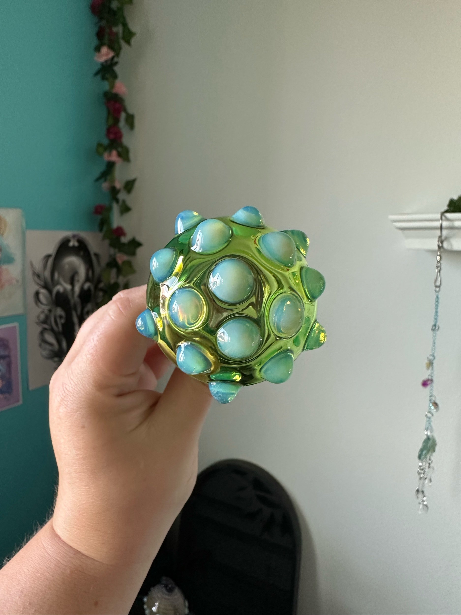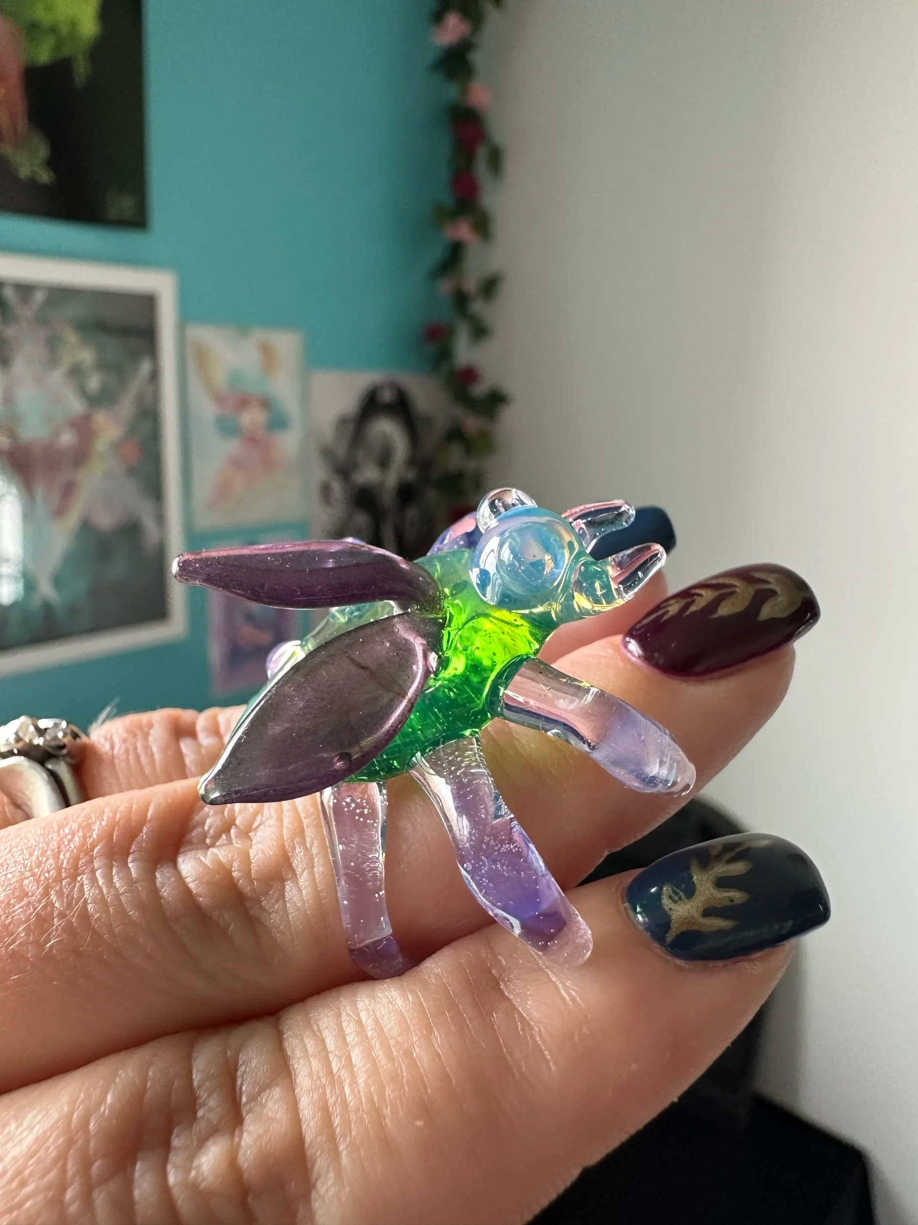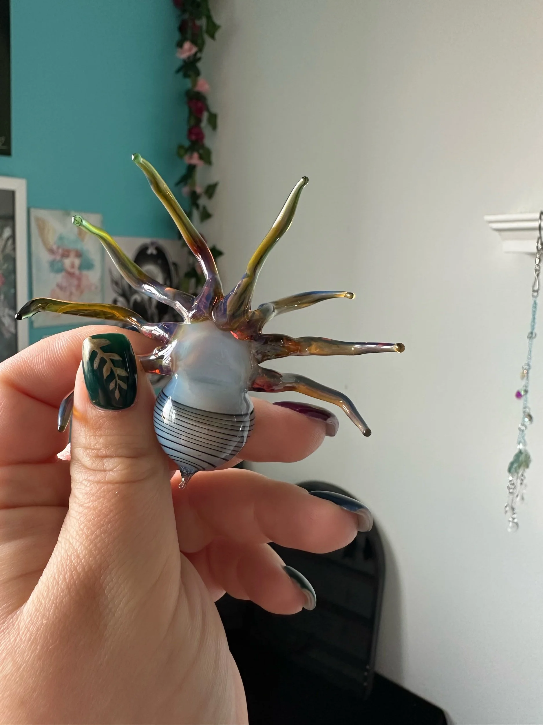 Torchworked borosilicate glass sculpture made by Deanna Cook. Fully annealed hard glass is still at risk of breaking if poorly handled.