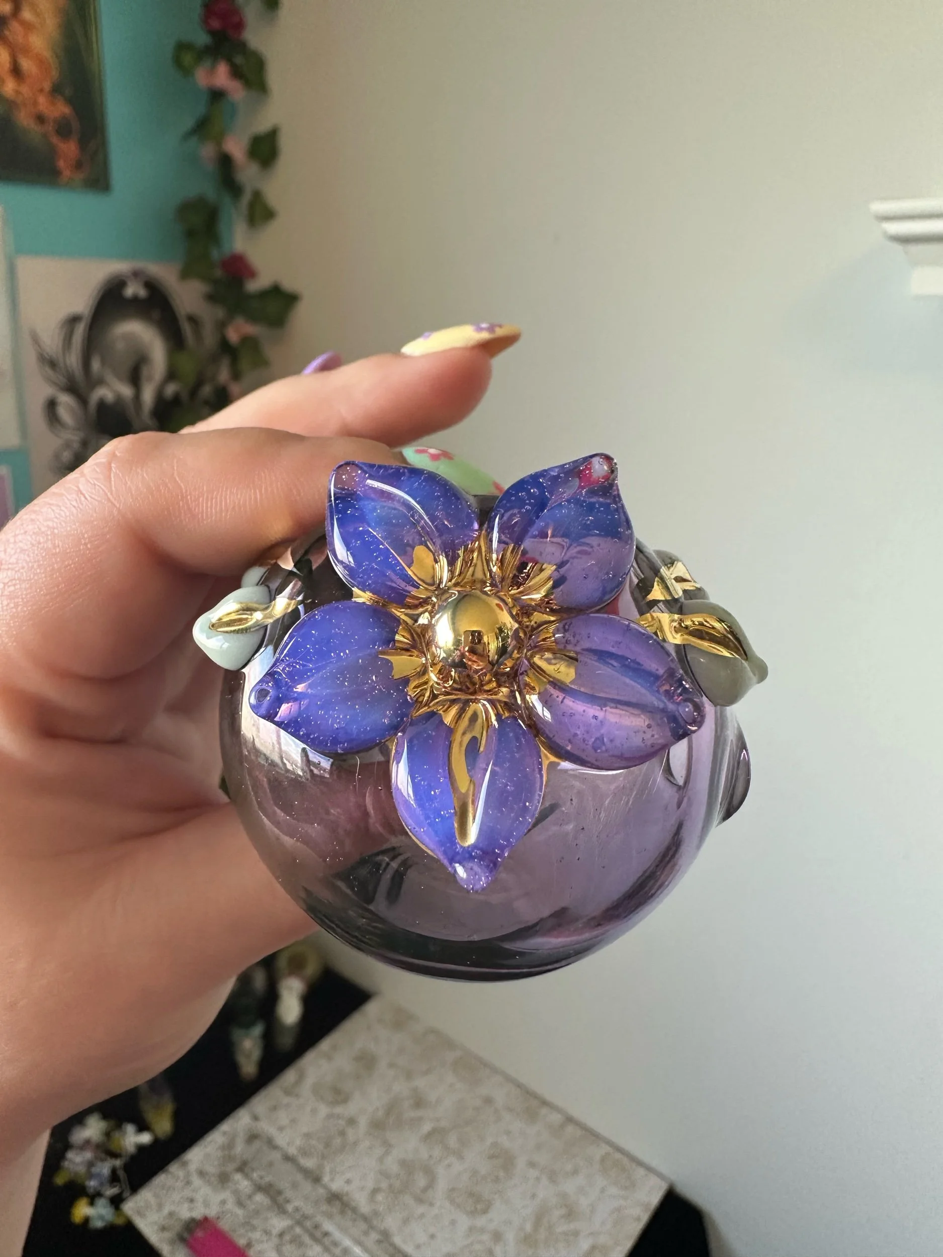 Torchworked borosilicate glass sculpture made by Deanna Cook. Fully annealed hard glass is still at risk of breaking if poorly handled.