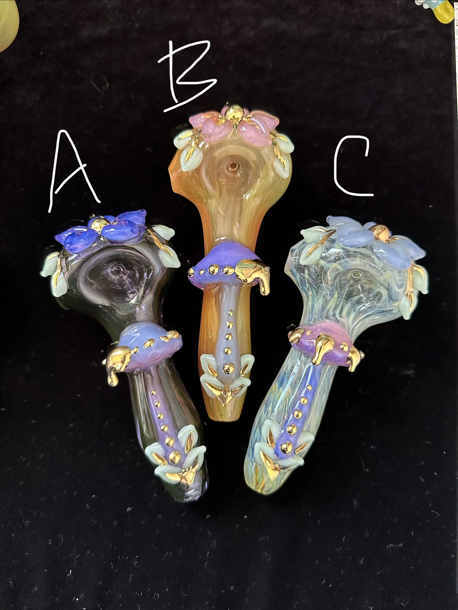 Functional glass pipes for smoking herb.