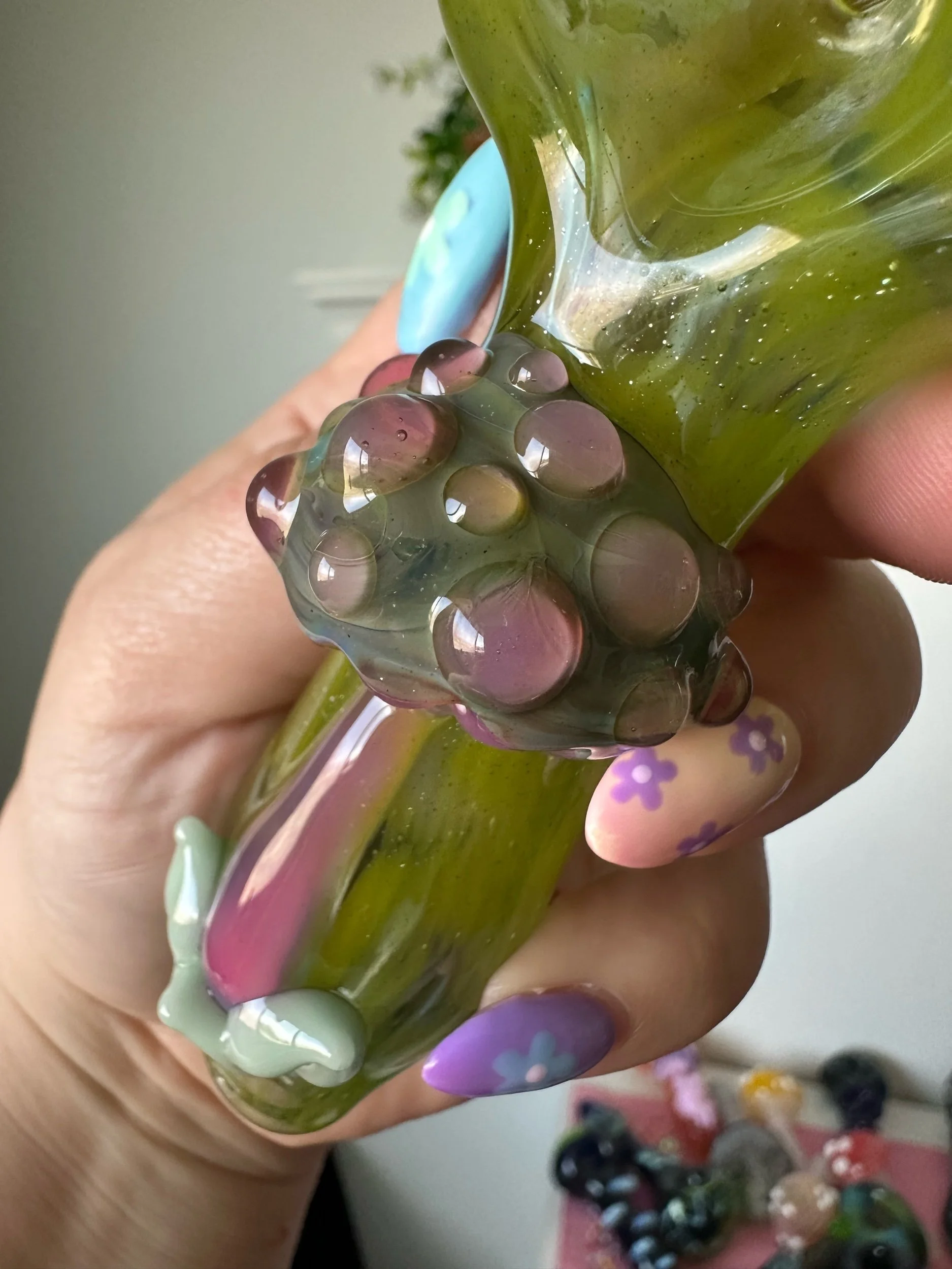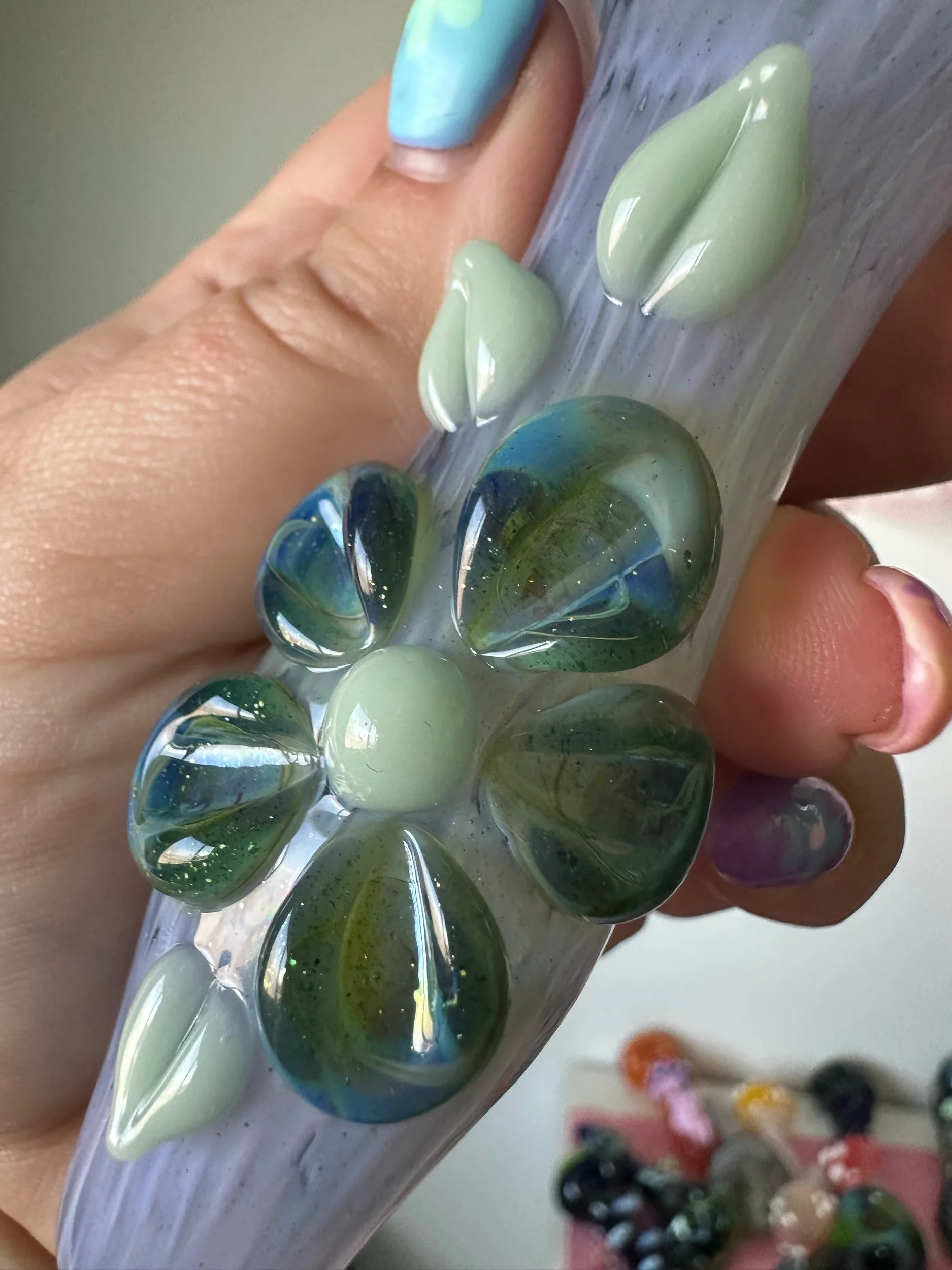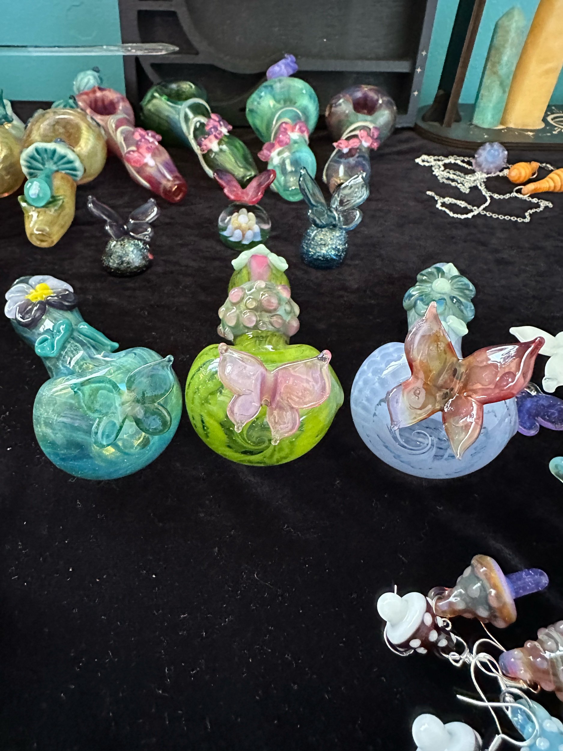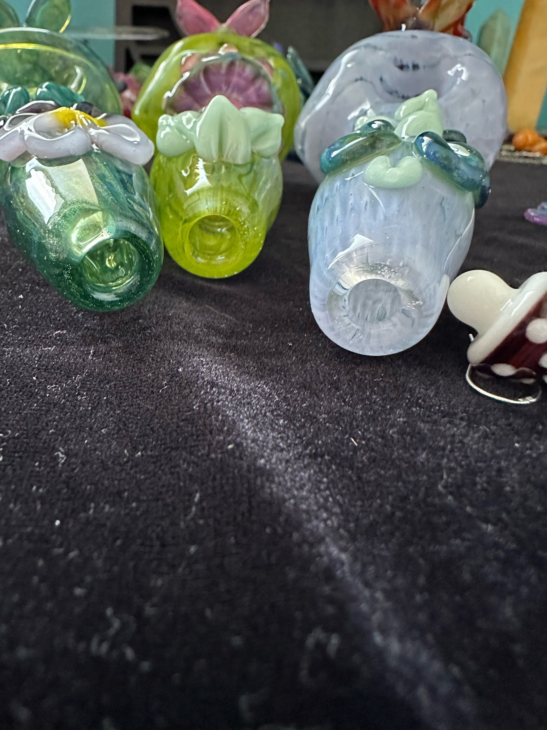 Torchworked borosilicate glass sculpture made by Deanna Cook. Fully annealed hard glass is still at risk of breaking if poorly handled.