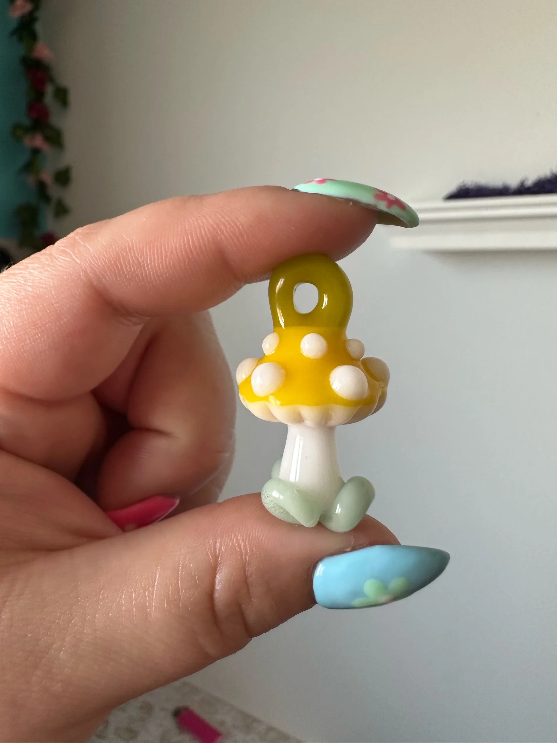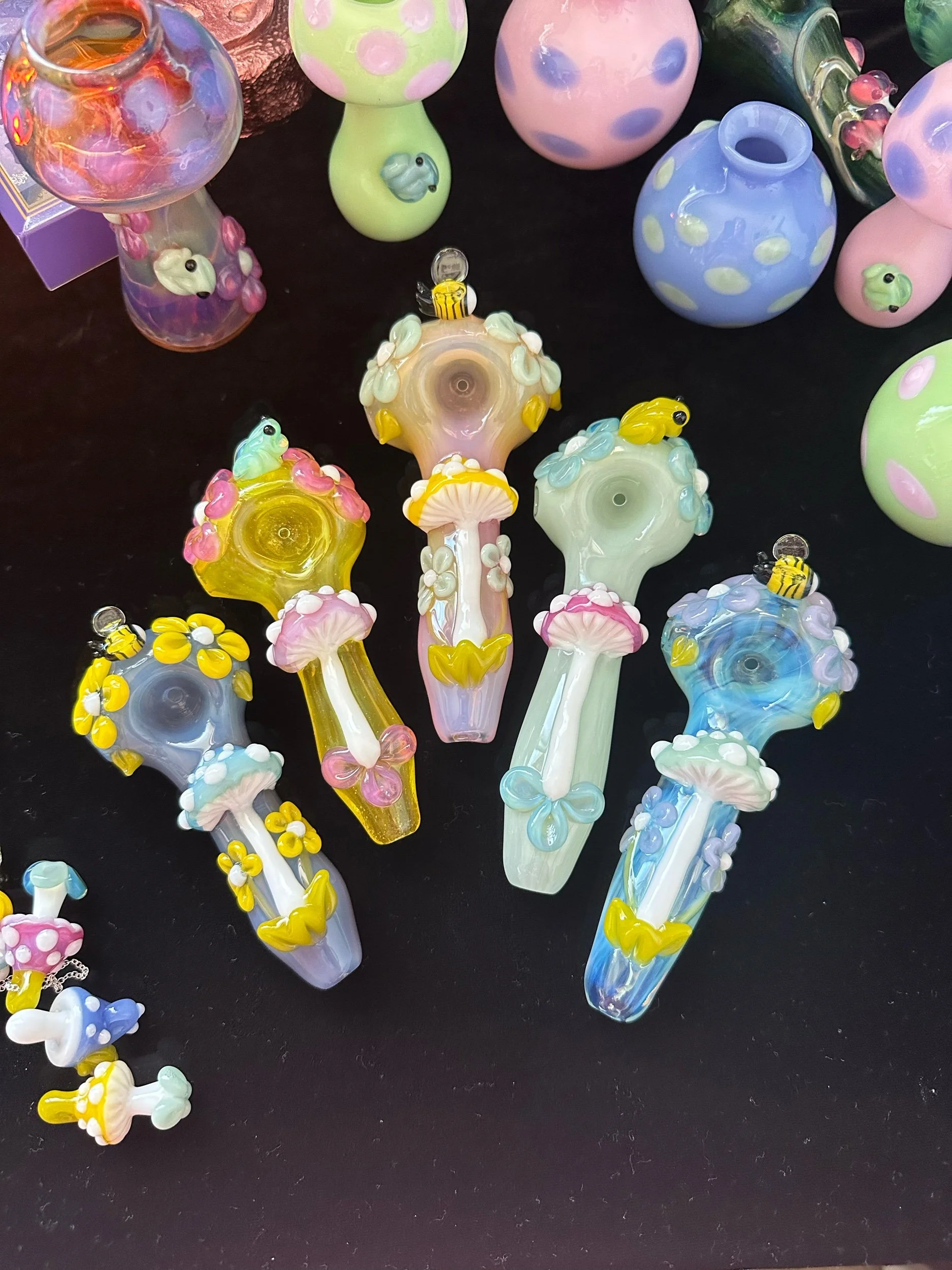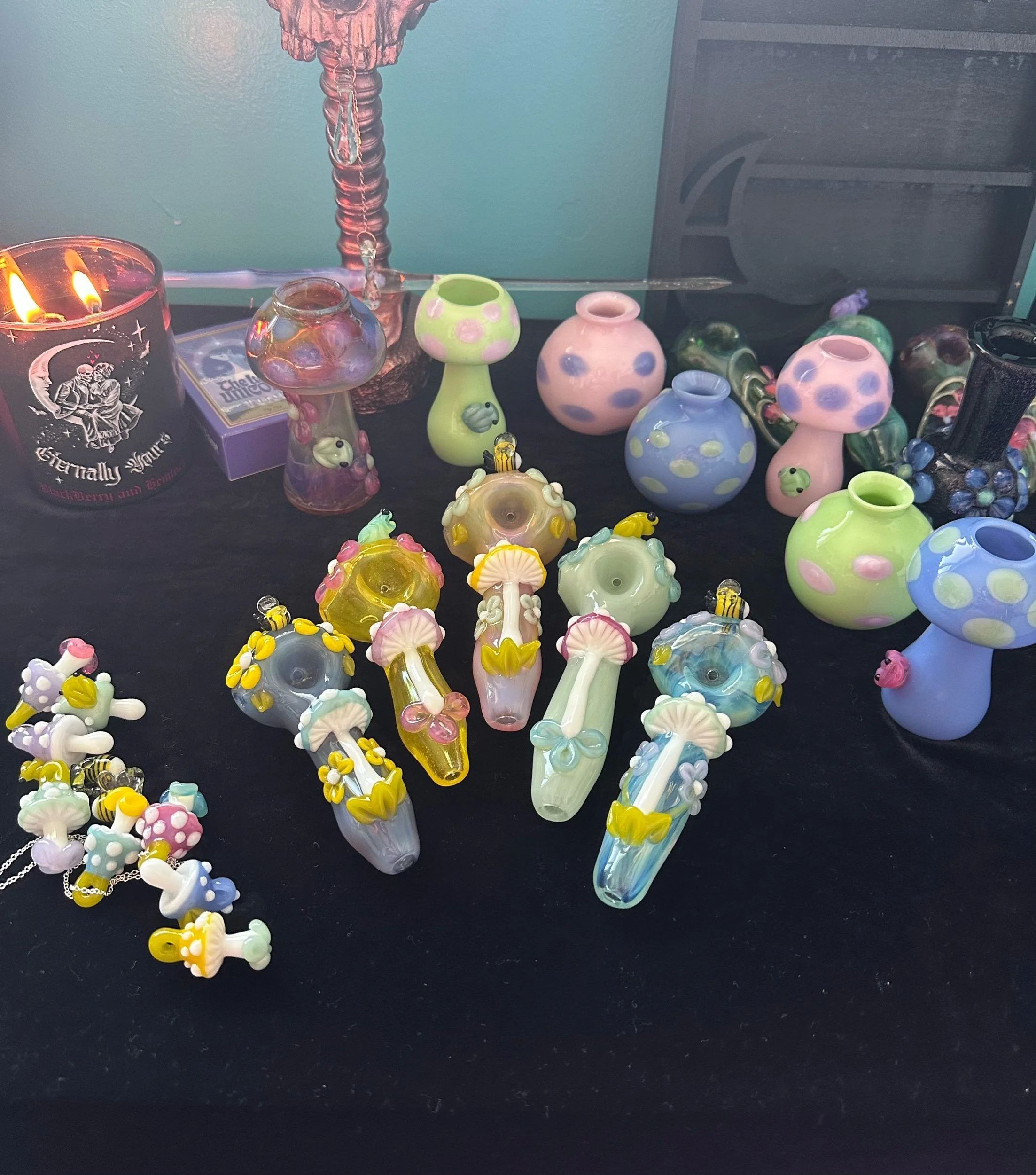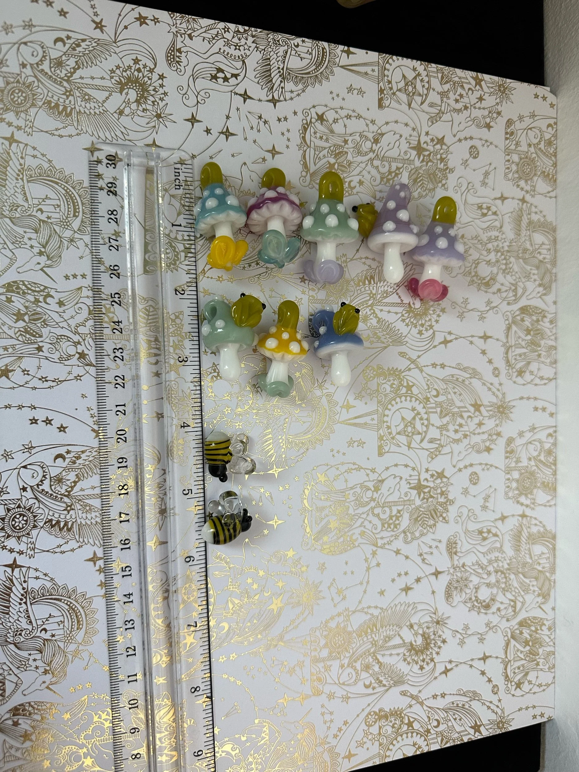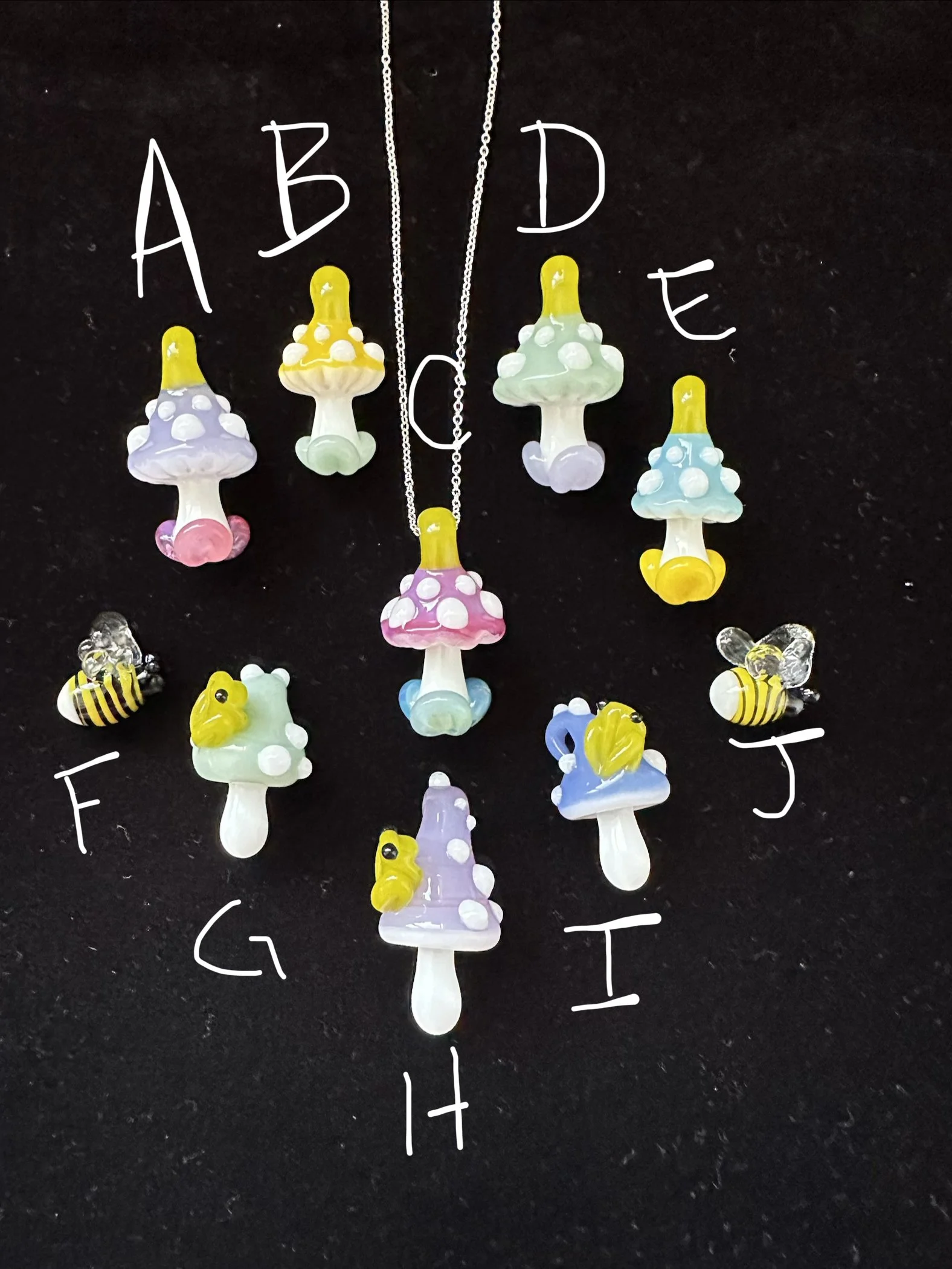 Spring Mushrooms, Bees, Frogs, and Flowers - glass pendant necklaces
