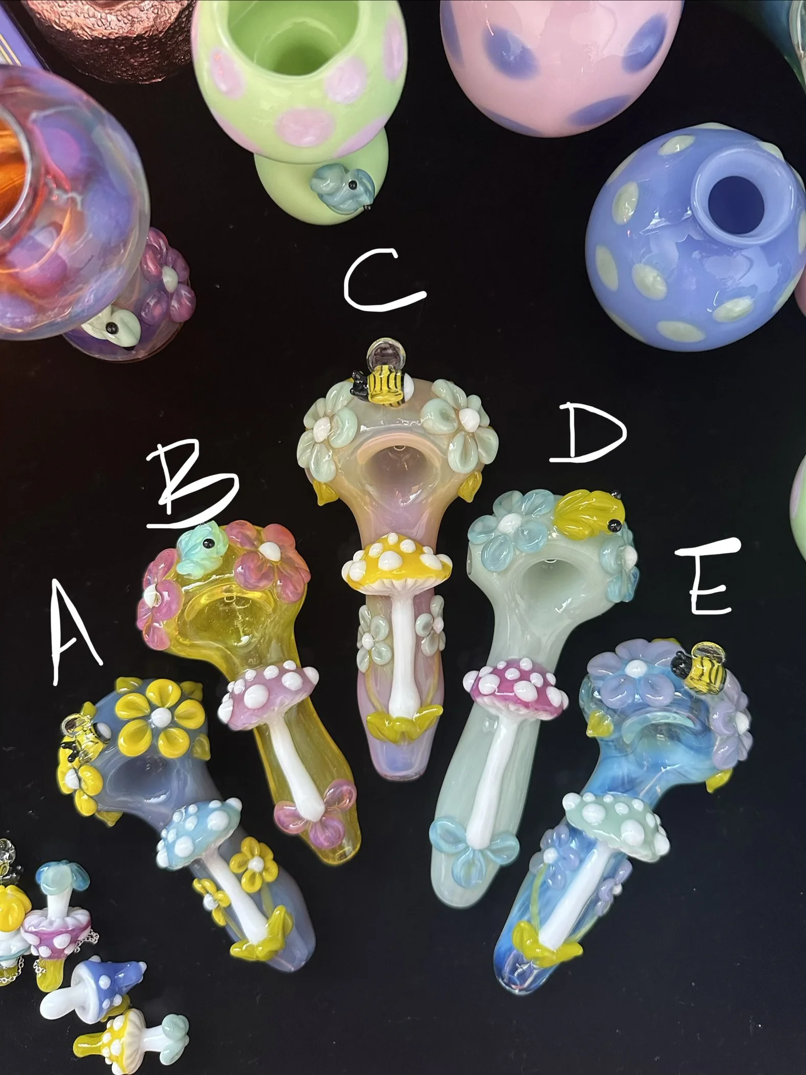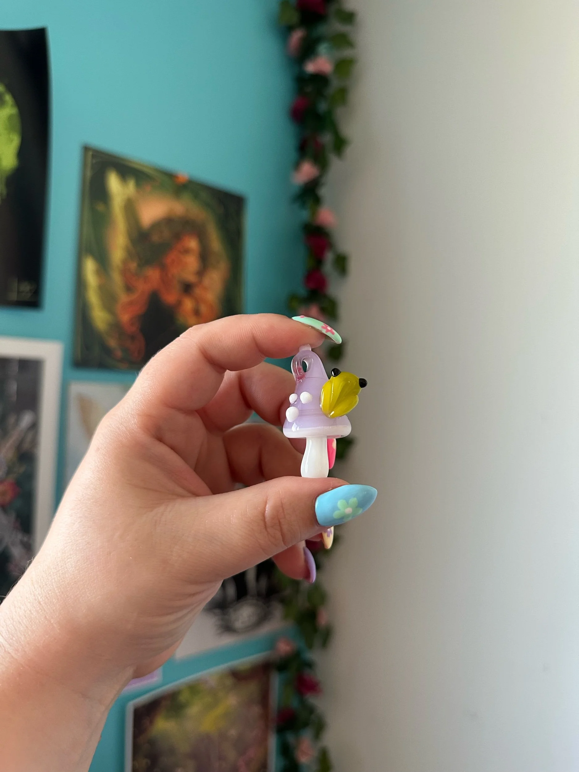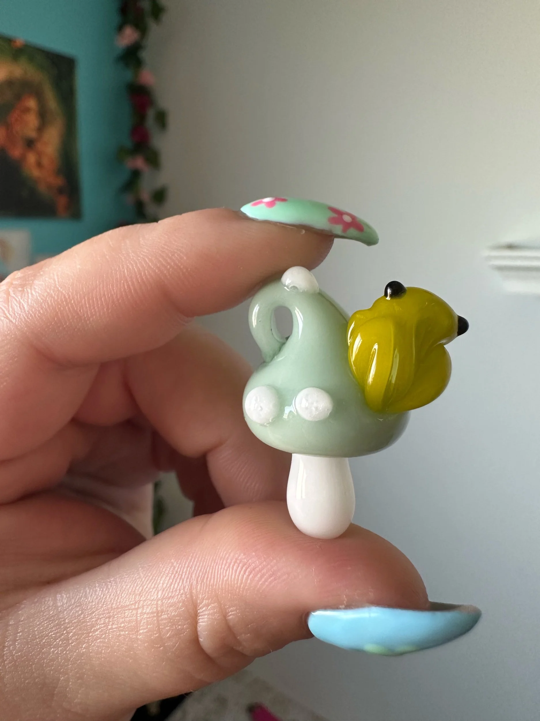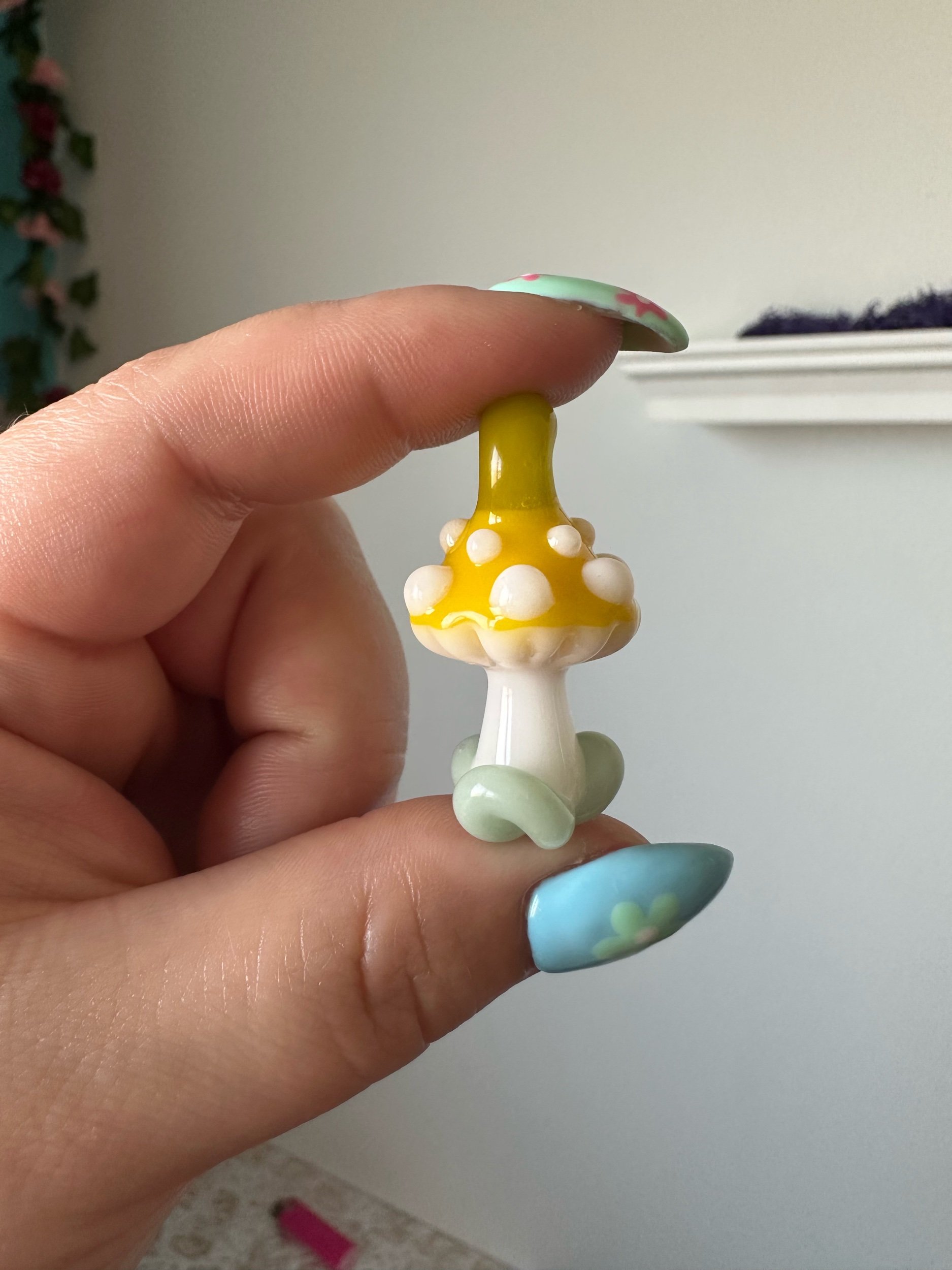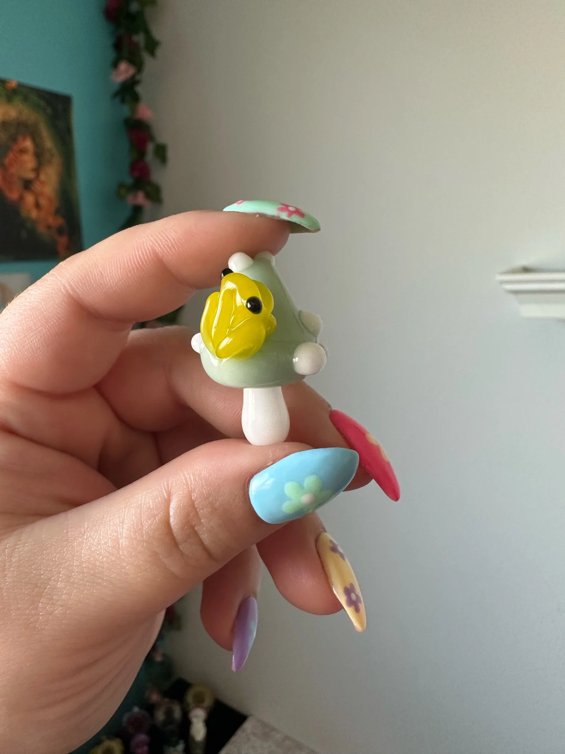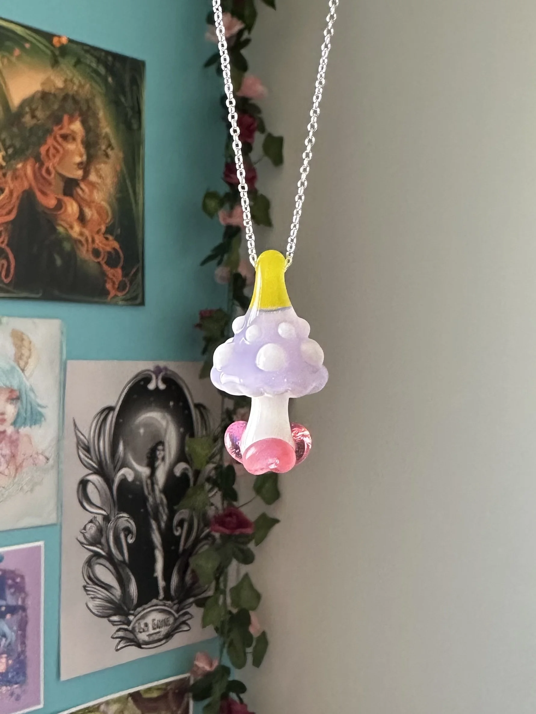 Spring Mushrooms, Bees, Frogs, and Flowers - glass pendant necklaces