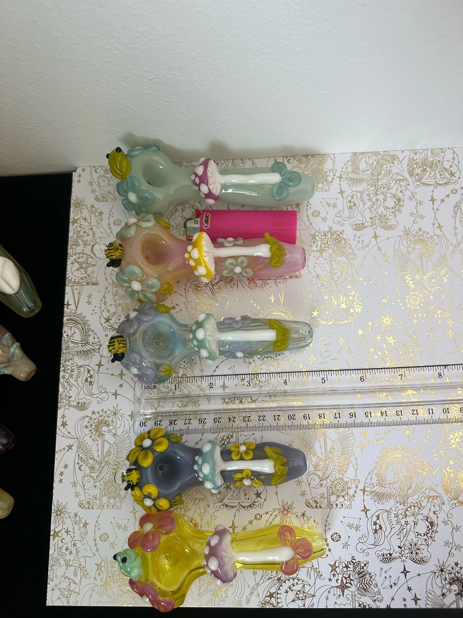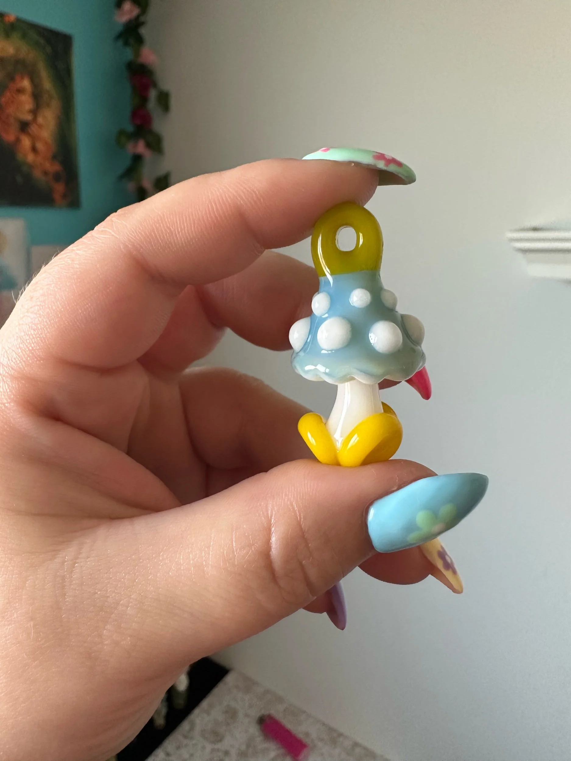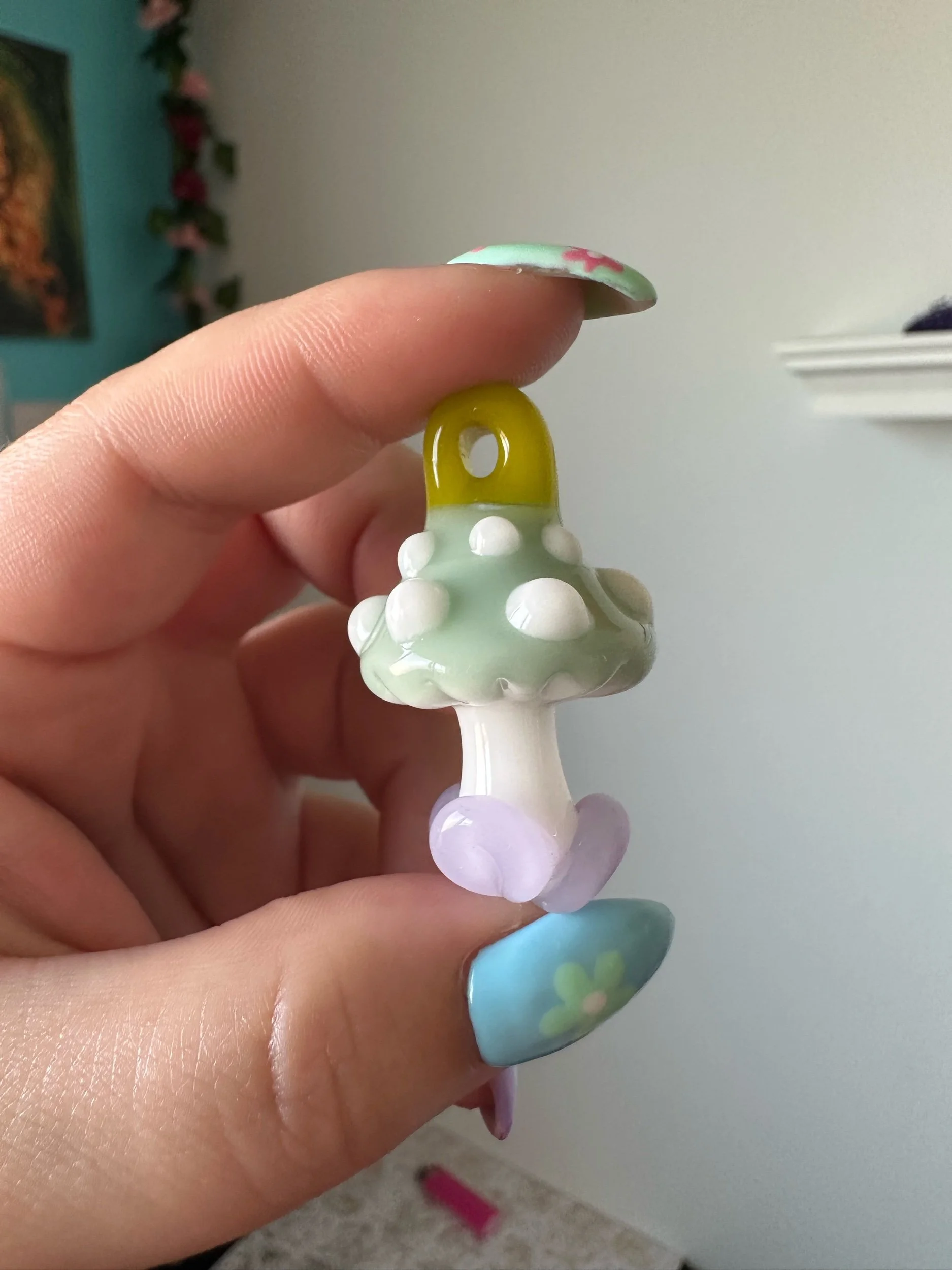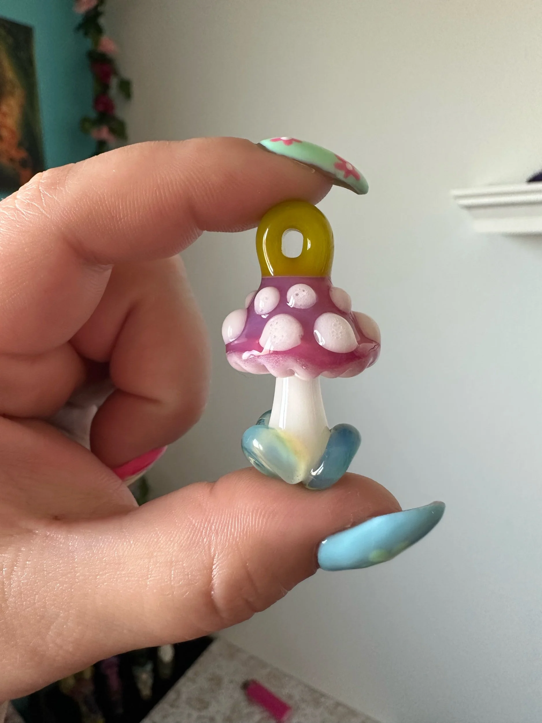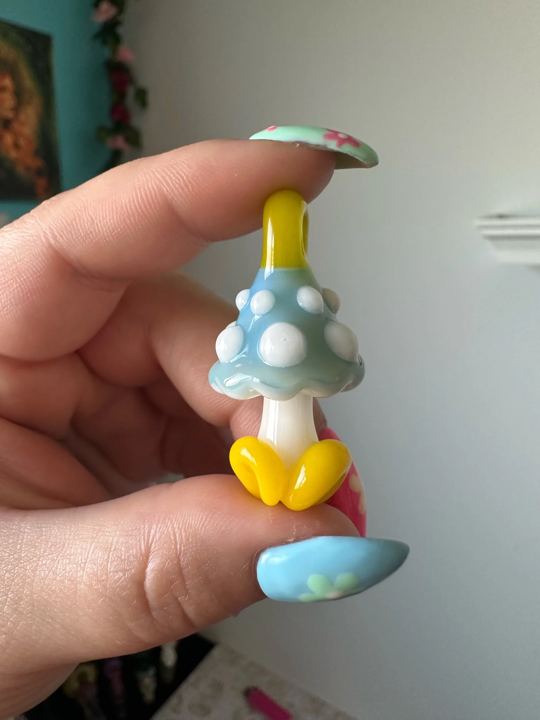 Spring Mushrooms, Bees, Frogs, and Flowers - glass pendant necklaces