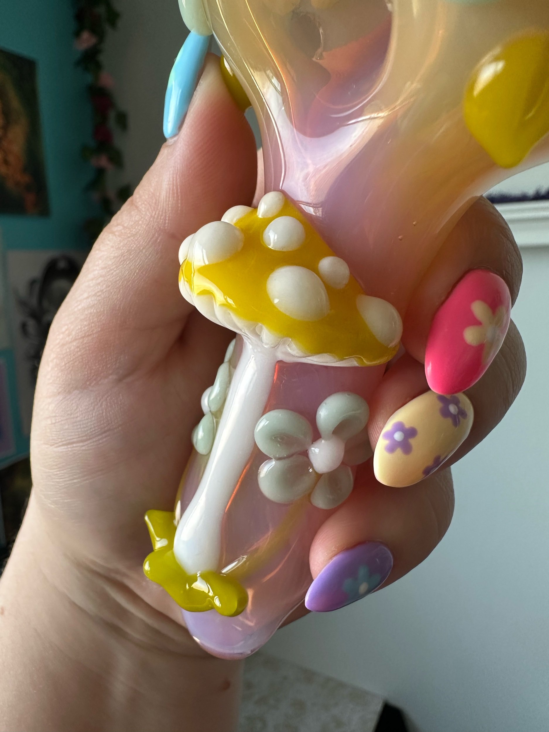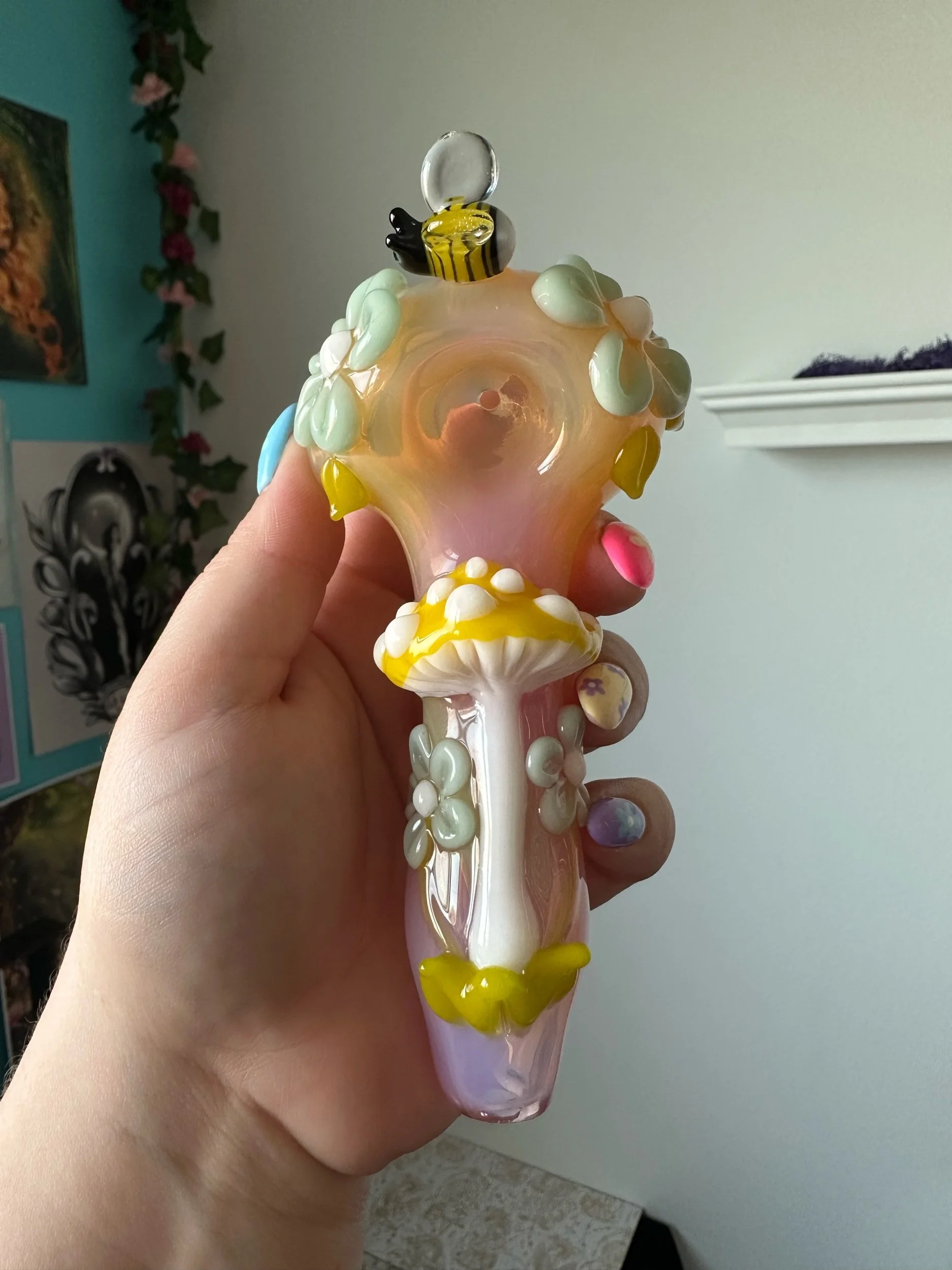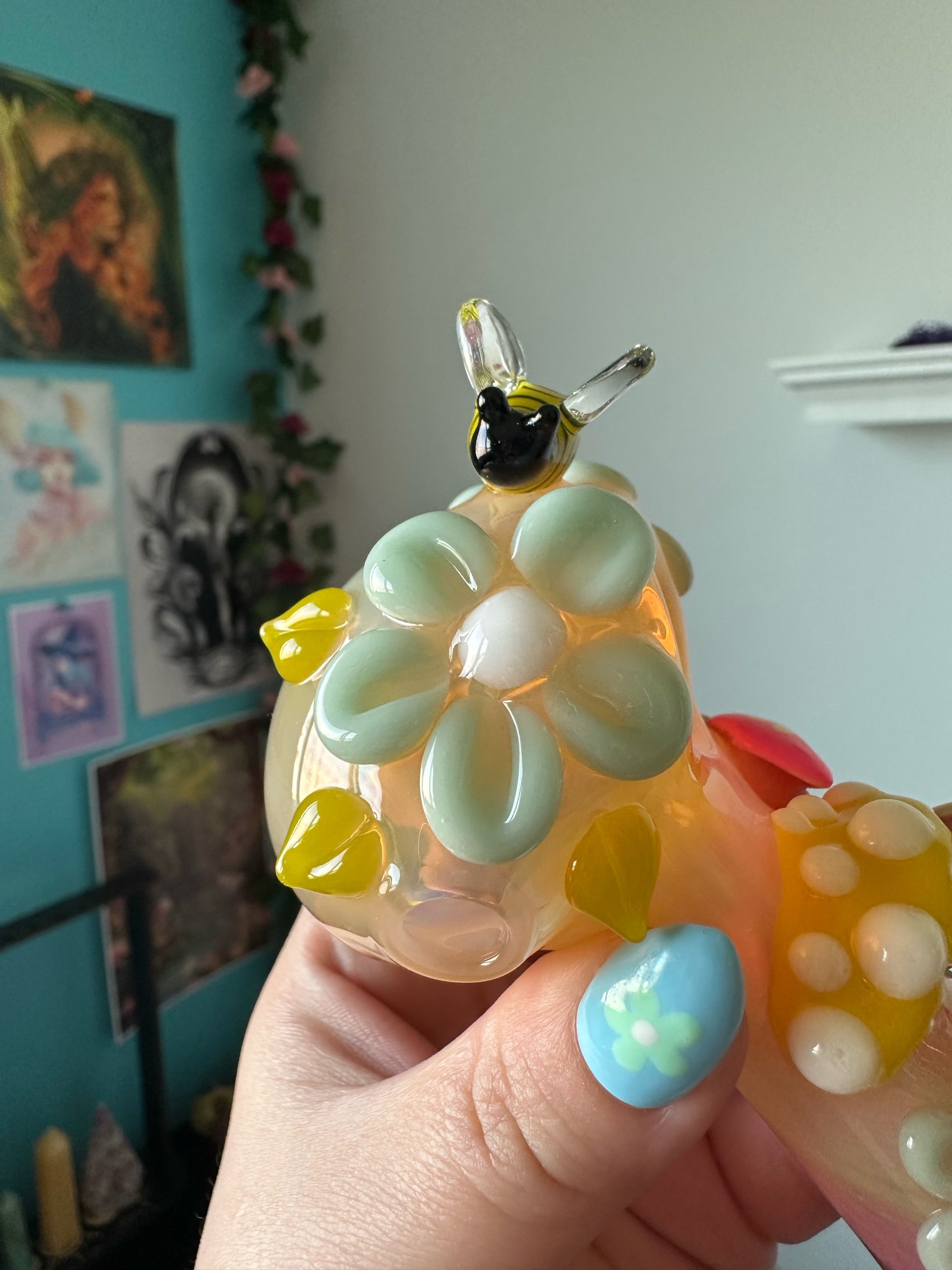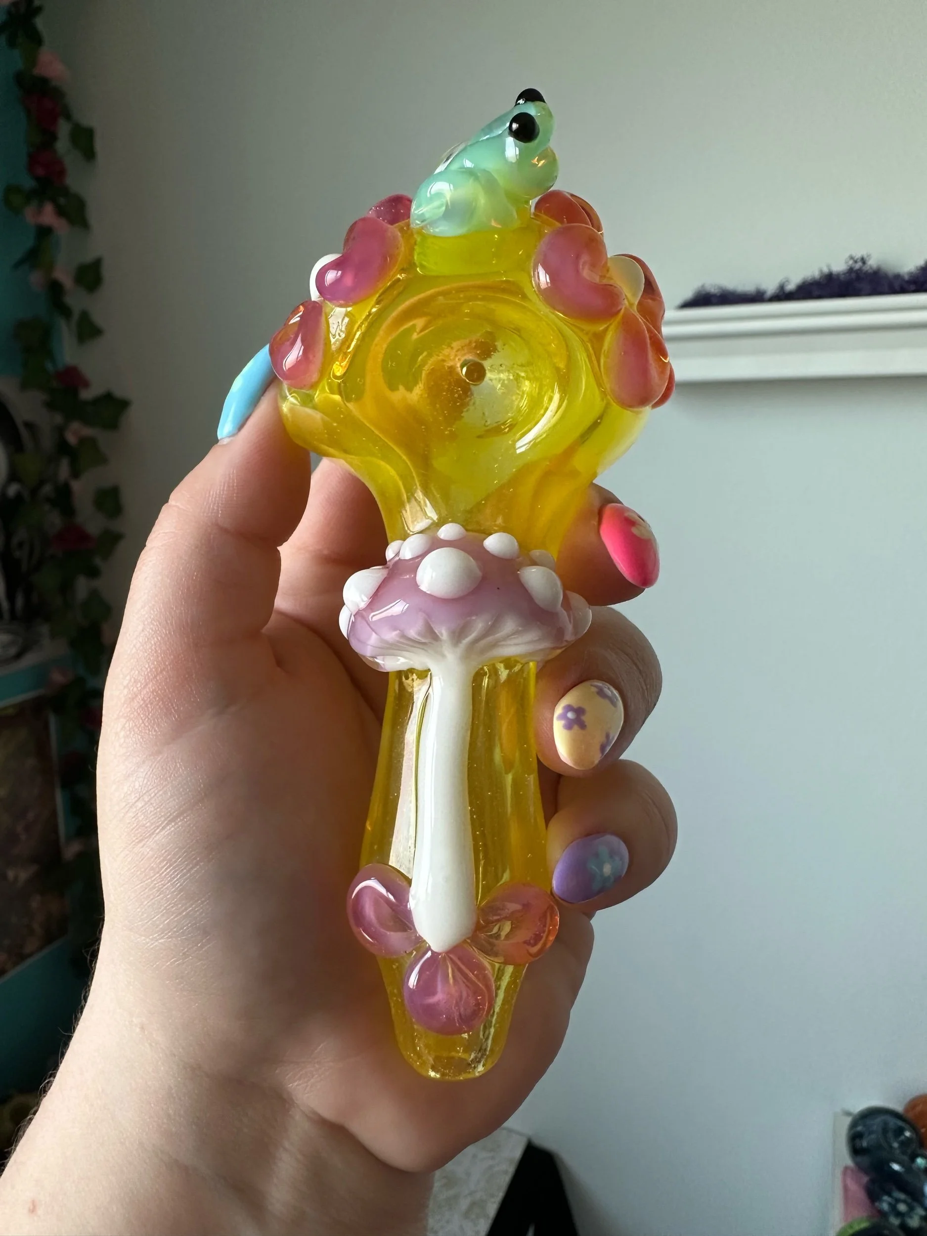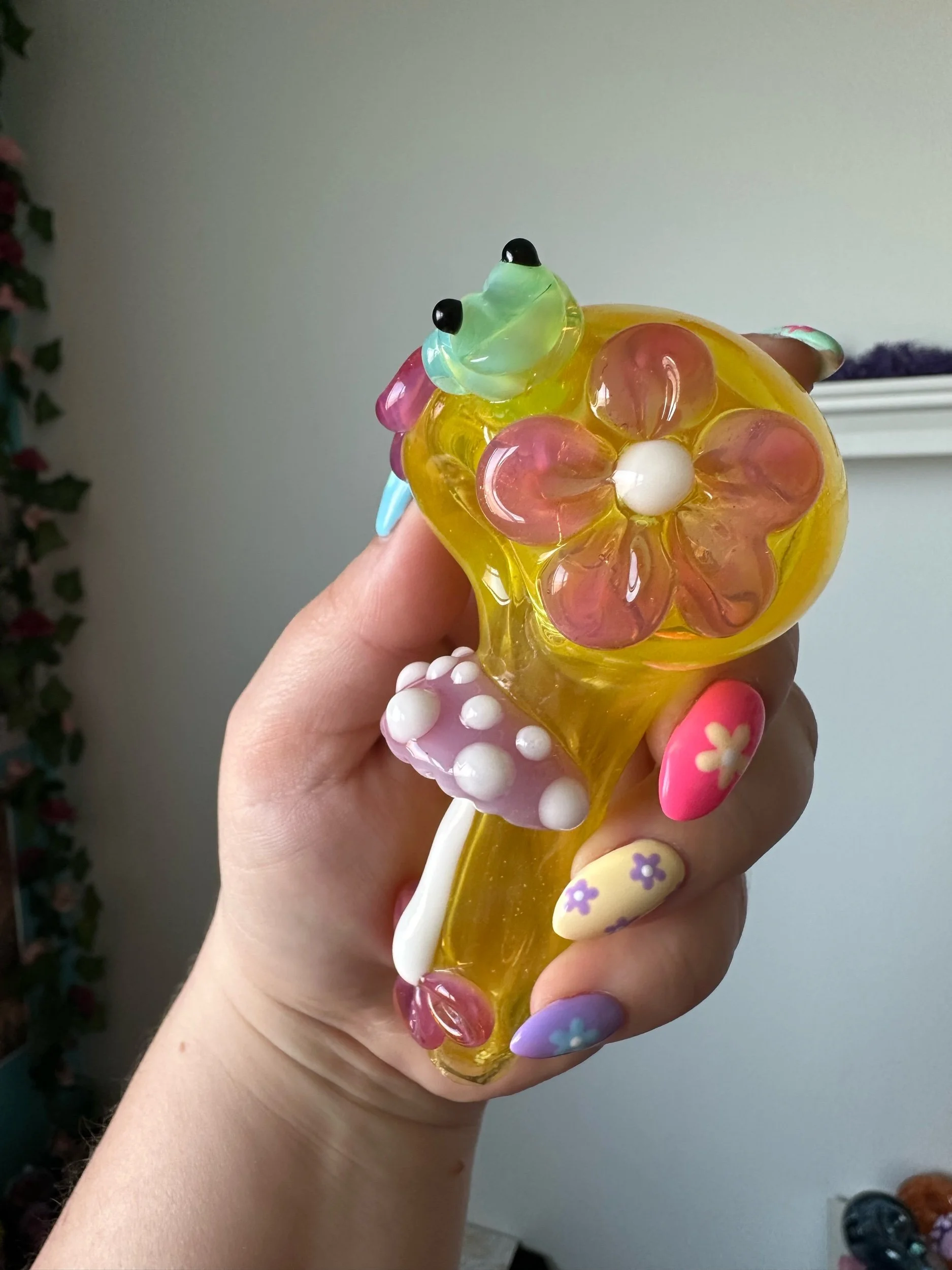 Spring Mushrooms, Bees, Frogs, and Flowers - glass pendant necklaces