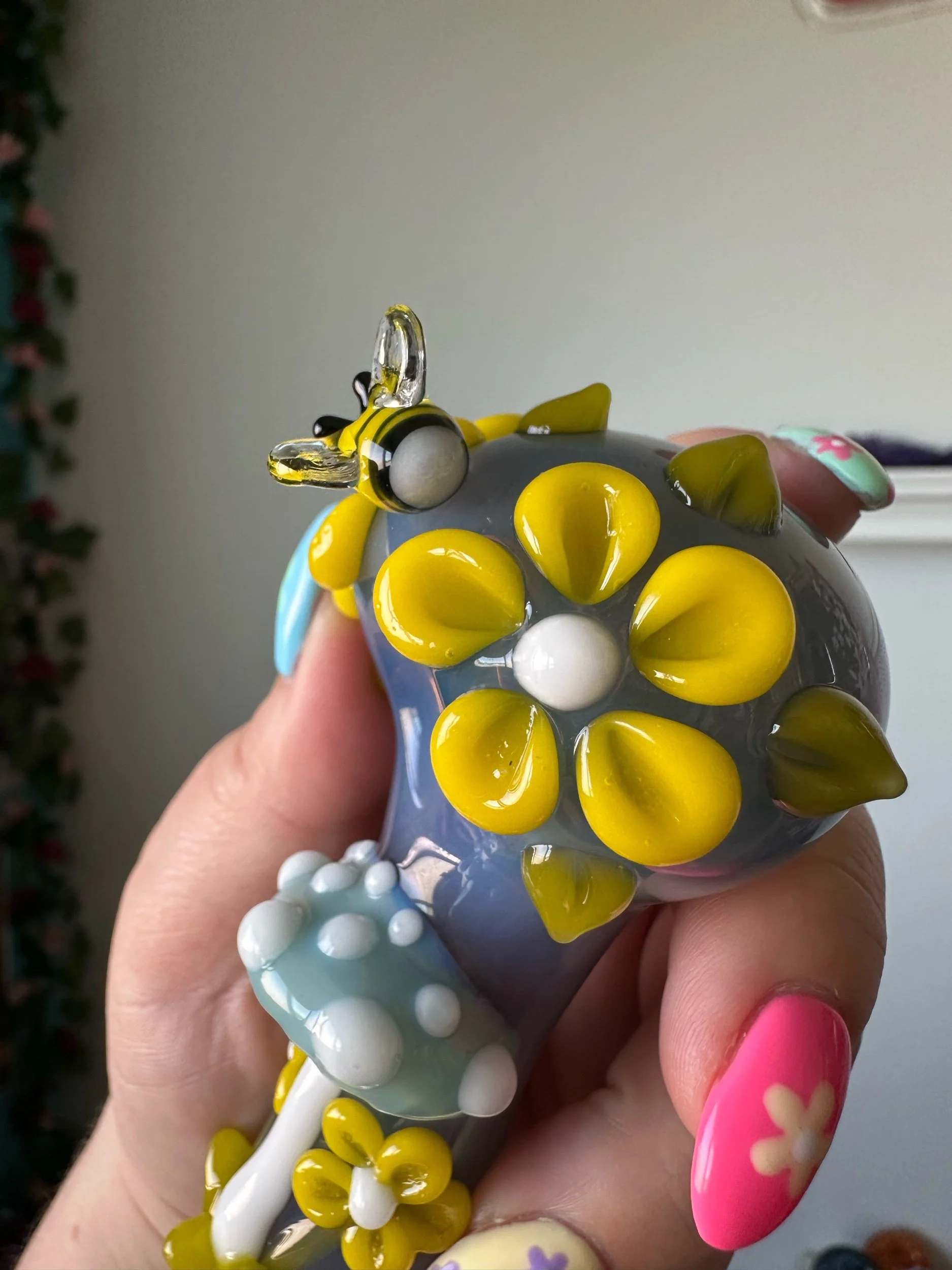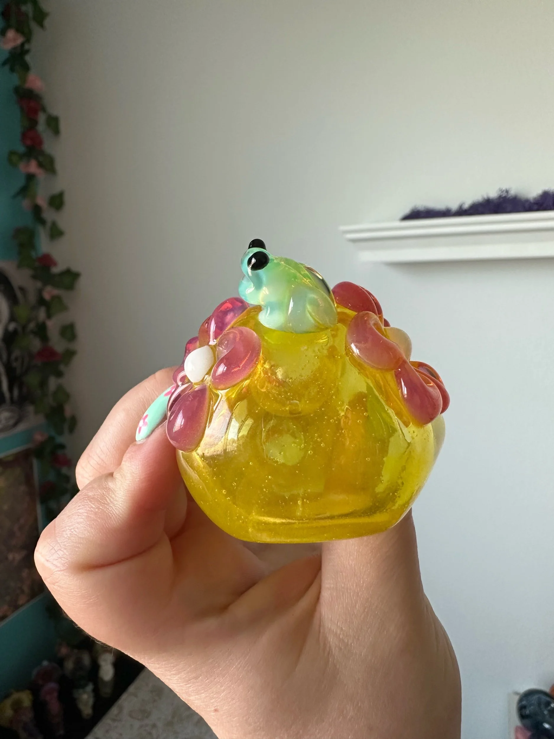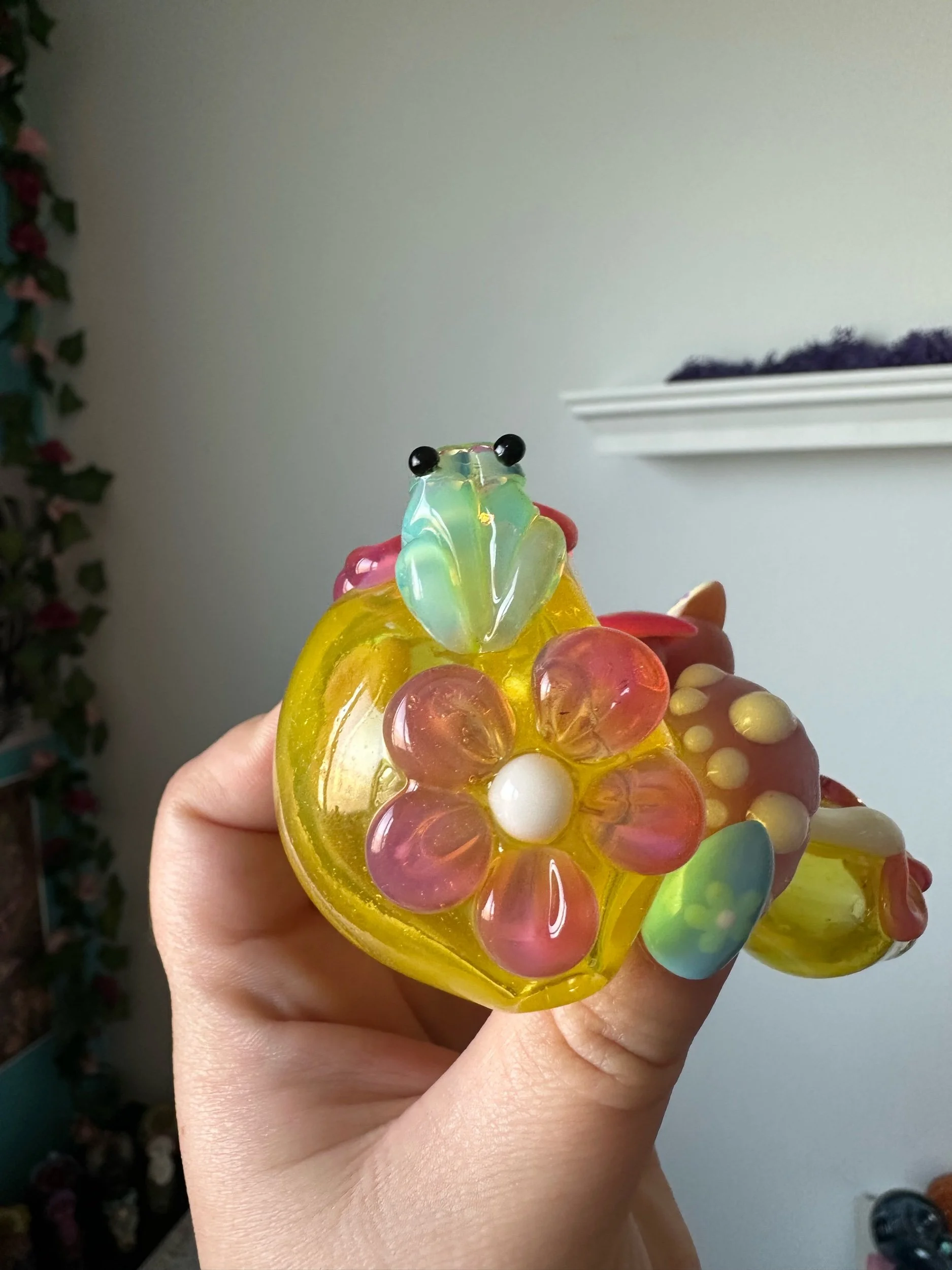 Torchworked borosilicate glass sculpture made by Deanna Cook. Fully annealed hard glass is still at risk of breaking if poorly handled.