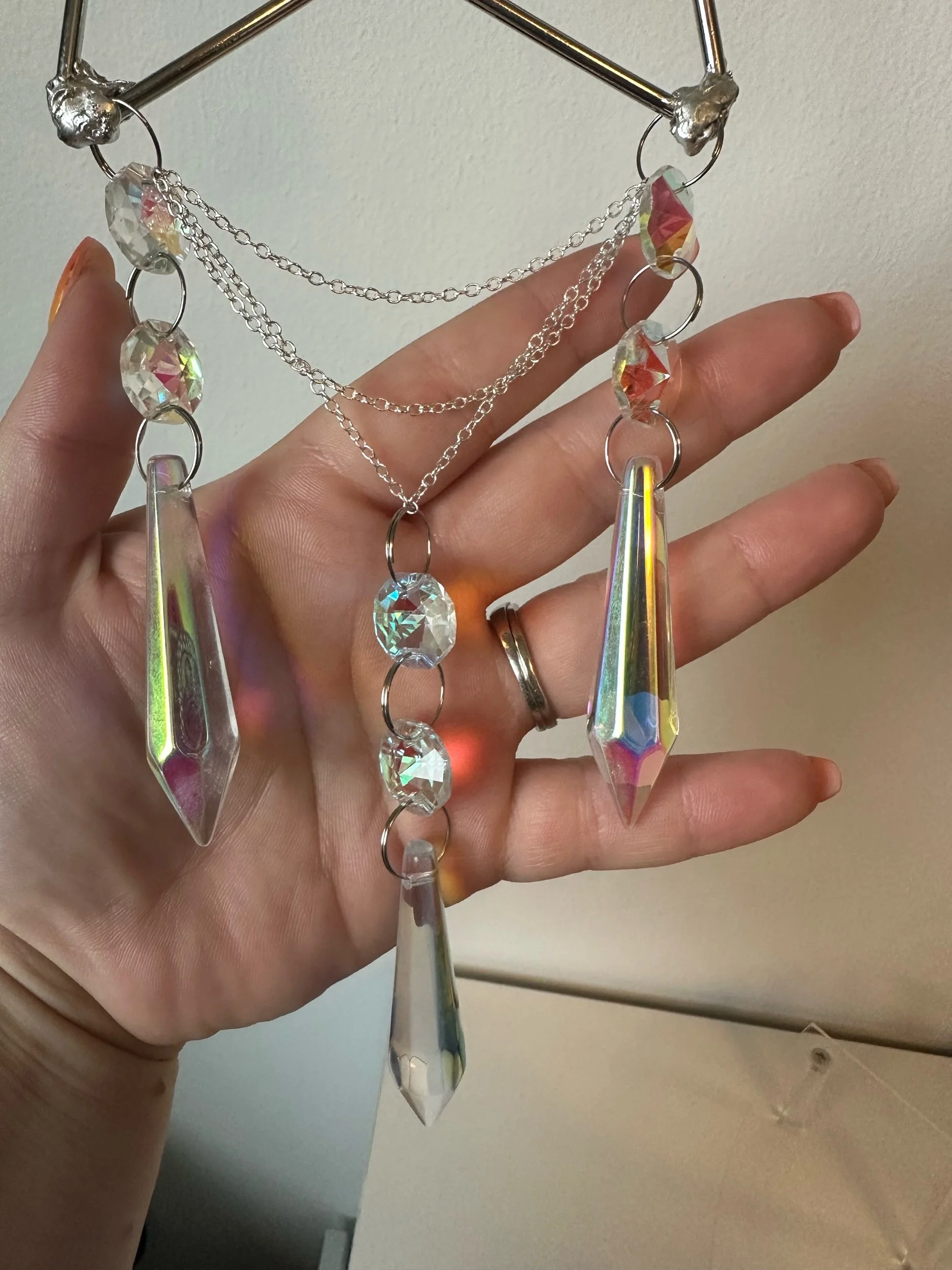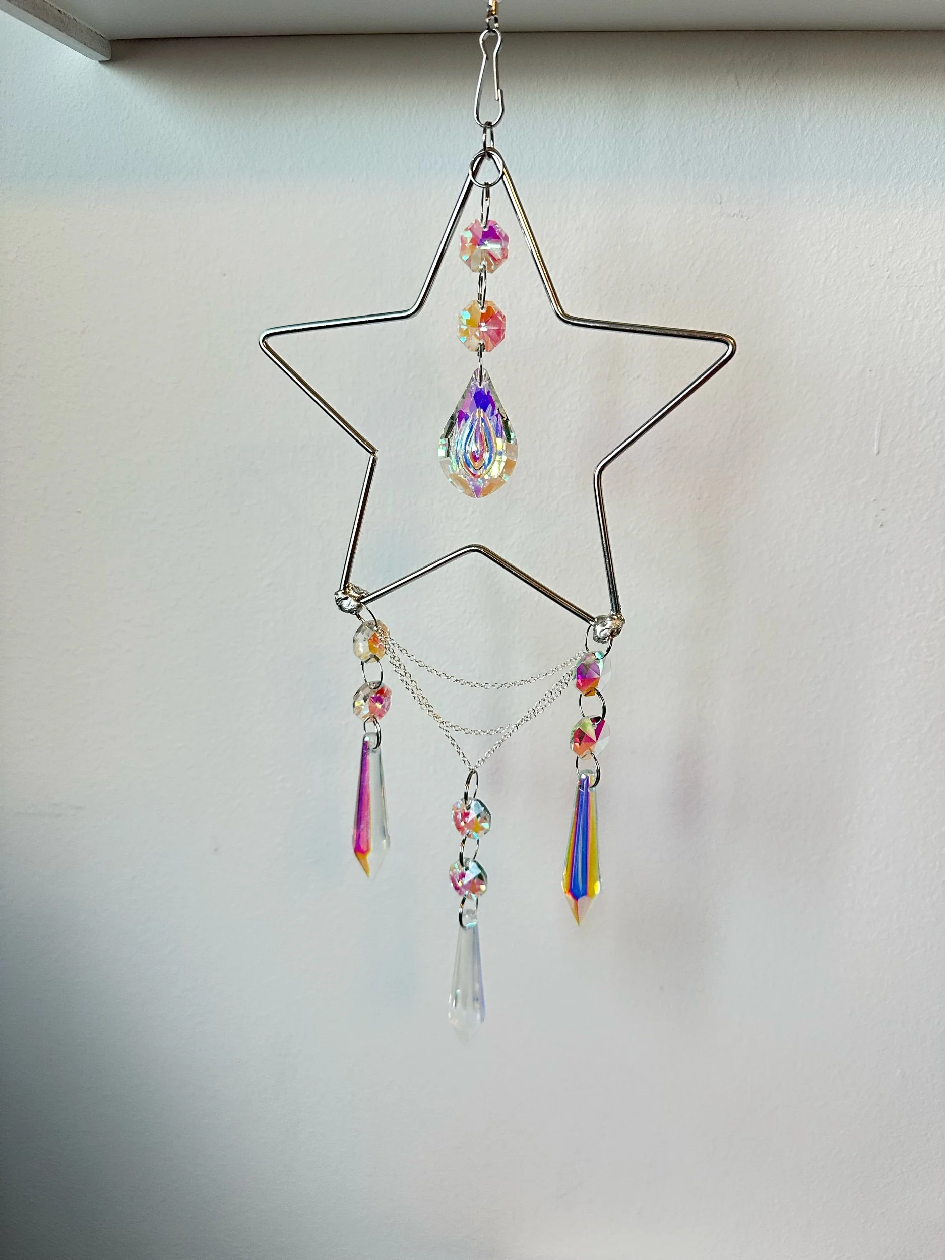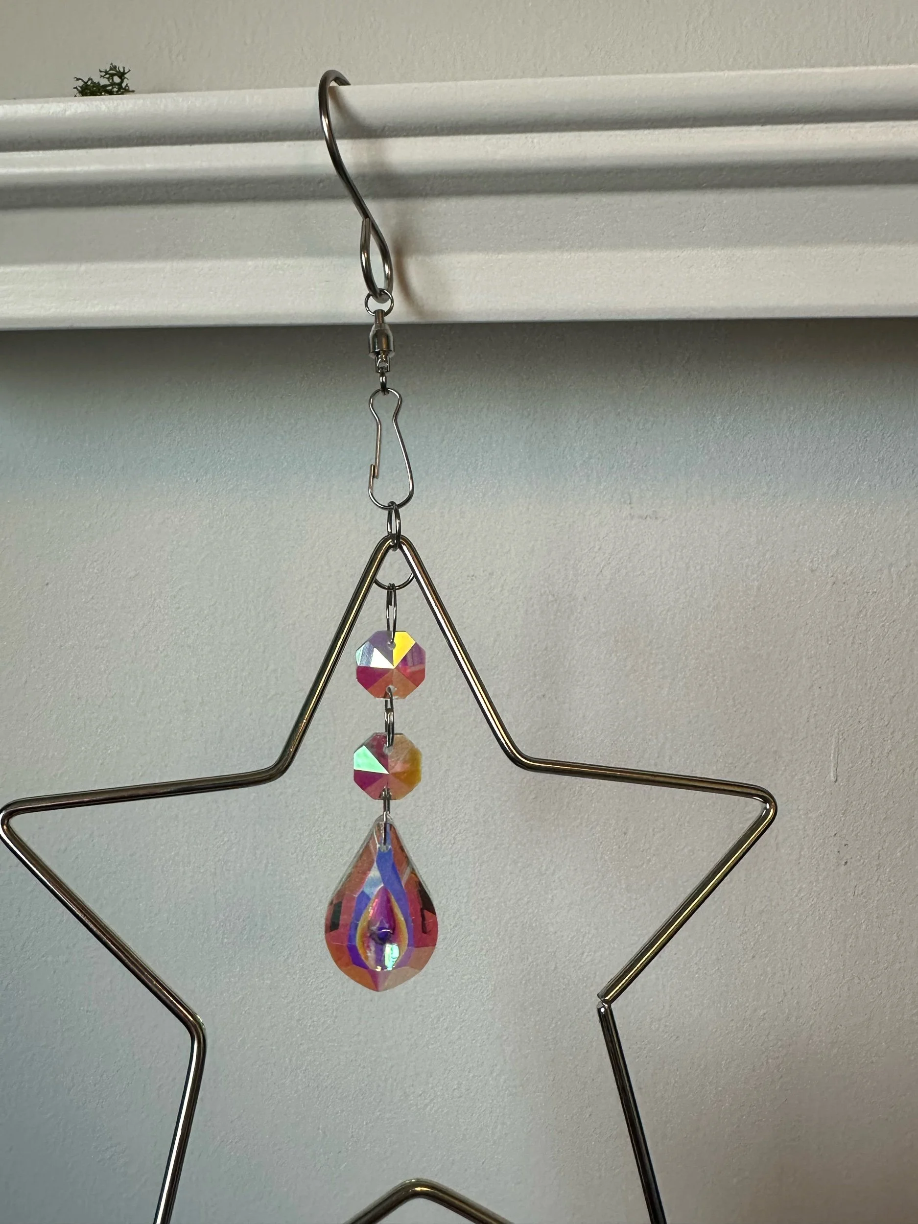 Hanging Decoration. These look great in a window or on the wall. Meant for indoors. Be mindful of open windows and high winds. Adjustable length and swivel make these easy to fit to your space.